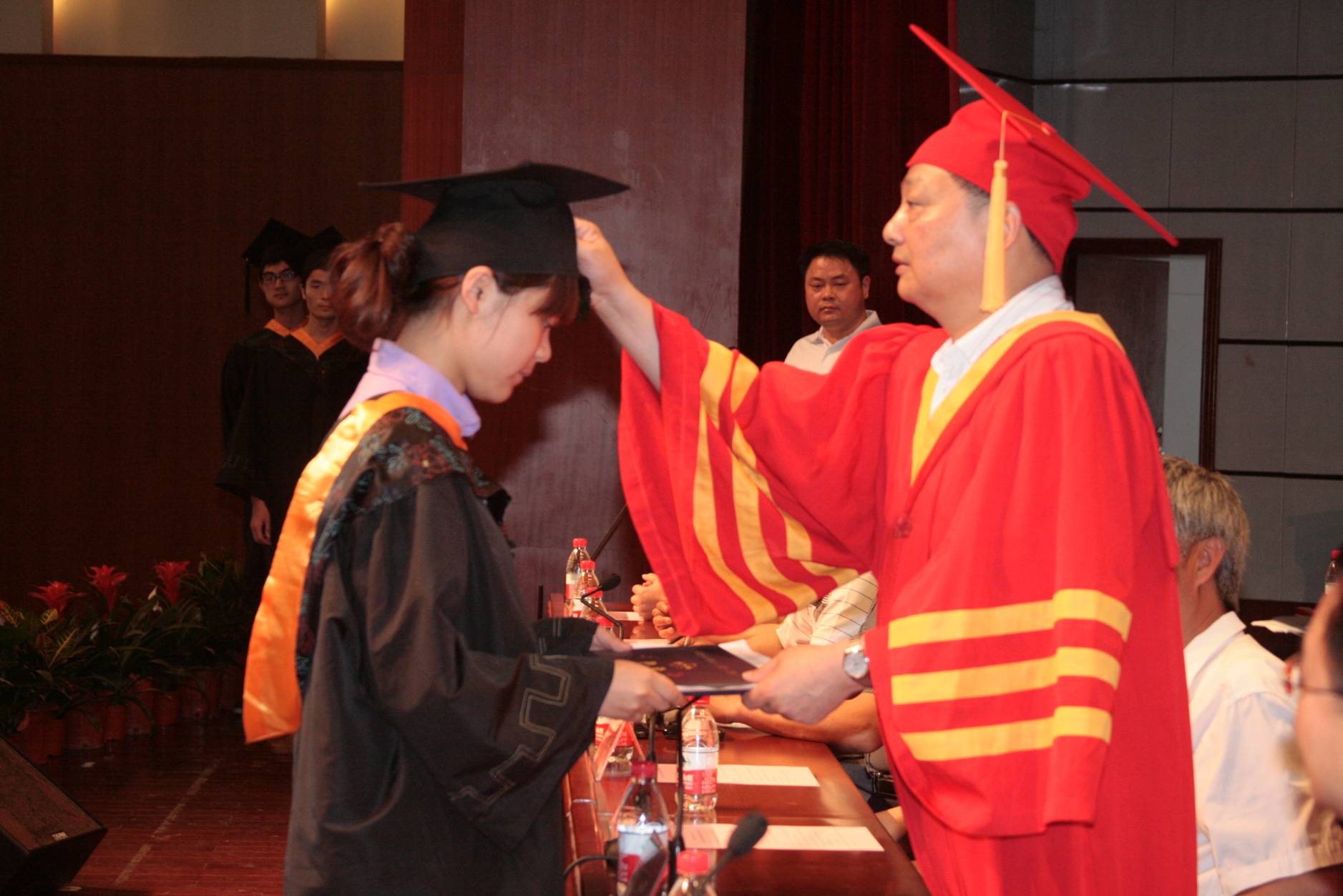 在热烈的掌声中,副校长、机电学院院长李震讲了话。他首先代表校党政领导和机电学院领导,向学业有成,即将告别母校、踏上新的人生征途的2011届毕业生表示最热烈的祝贺!他说,你们即将步入社会,人生就此打开了一扇崭新的大门。面临新的学习和工作环境,作为你们的师长和朋友,我想给大家提几点希望和要求:首先是坚定理想,志存高远。李震说,理想是我们心中的“火炬”,信念是我们心中的“灯塔”。没有理想的人生就没有活力,就没有生机。为此你们一定要心怀报国之志,放眼未来,志存高远,“以天下为己任”,从我做起,从现在做起,树立远大的理想,保持坚定信念。其次是端正心态,胸怀宽广。态度决定习惯。社会是个大舞台,成功与失败、幸福与痛苦,都在一线之间。如果没有良好的心态、宽广的胸怀,就无法适应瞬息万变的社会。再次,爱岗敬业,勇于创新。俗话说,天下大事,必作于细。我希望同学们都能够立足岗位,兢兢业业地做好每一项具体的事物。不要贪图虚名,急功近利。同时也希望你们能够在诚信求实的基础上富于创造,勇于创新。四是继续学习,完善自我。在信息化时代的今天,学习已成为人类终身的事业。只要我们不断学习,不断充实完善自我,我们就有实力超越自我,服务社会。五是文明离校,做好表率。毕业生文明离校一直是我校的良好传统,希望同学们继续发扬这一优良传统,在即将离开母校之际,更加自觉地遵守校规校纪,爱护公物,体现出当代大学生良好的思想道德素质和精神面貌,为学弟学妹们做好表率。李震最后说,同学们,请记住今天的毕业典礼,母校永远不会忘记你们,母校的老师们盼望你们用自己的青春和智慧去铸就未来的辉煌!
