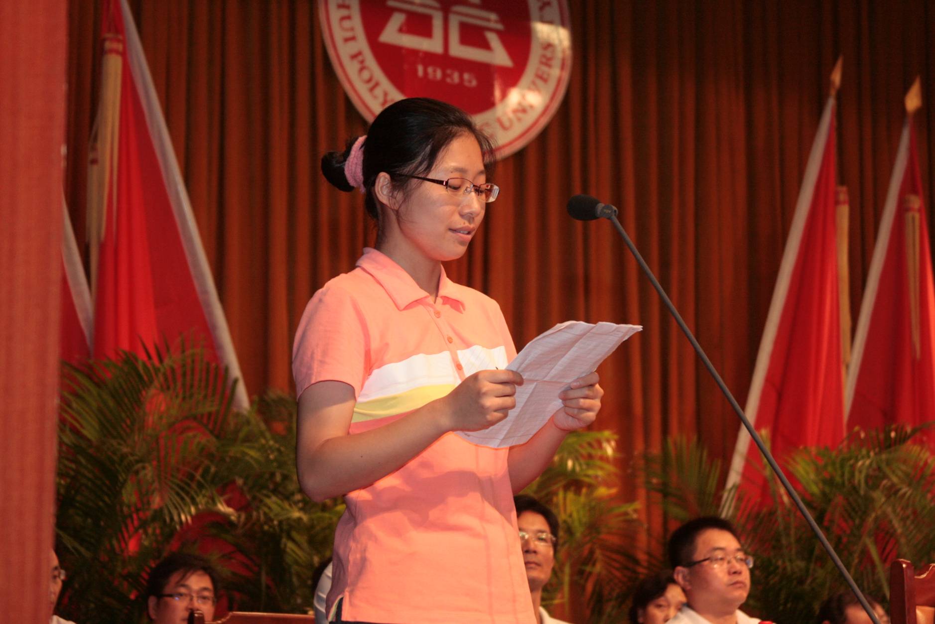 毕业生代表王洁发了言。他说,在母校的很多记忆将成为生命中最为珍贵的收藏。毕业是大学四年的精彩谢幕,更是下一段征程的郑重开始。同学们会秉承母校的校训,志存高远,自强不息,做拥有智慧并富有激情的人,做德才兼备并勇于创新的人。