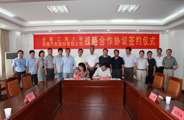 签约仪式上,干洪首先对奇瑞公司各位领导表示欢迎。他说,我校一直非常注重与企业开展全方位的合作,与奇瑞公司签订战略合作协议,是双方期盼已久的。他简要介绍了我校基本情况,他说,近年来我校发展很快,尤其是学科专业建设得到了长足的发展,与奇瑞公司有着良好的合作基础和前景。我校致力于高素质人才培养和高端科研及其成果转化服务经济建设,战略合作协议的签署,为双方合作共赢发展搭建了良好平台。把科技创新和企业发展结合并在产品上最终体现,这既是高等教育和行业发展的要求,也是双方战略合作的目的。希望双方加强沟通,不断将合作引向深入,为地方经济的发展作出更大贡献!