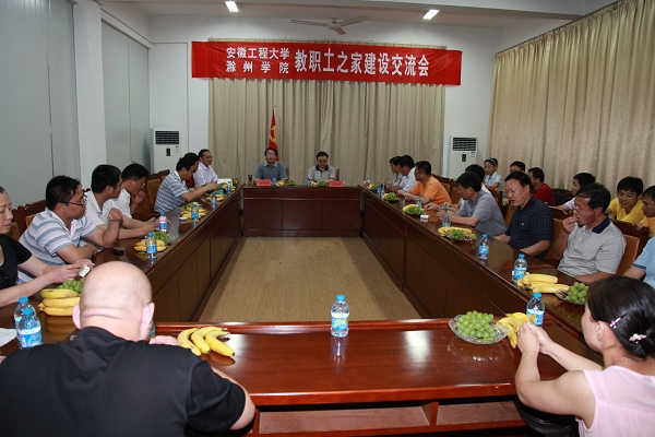 30人,来我校就建设教职工之家工作进行考察交流。学校党委副书记、副校长方友实,党委办公室主任郭兴众,工会主席寿达军等热情接待了来访的滁州学院领导和同仁。