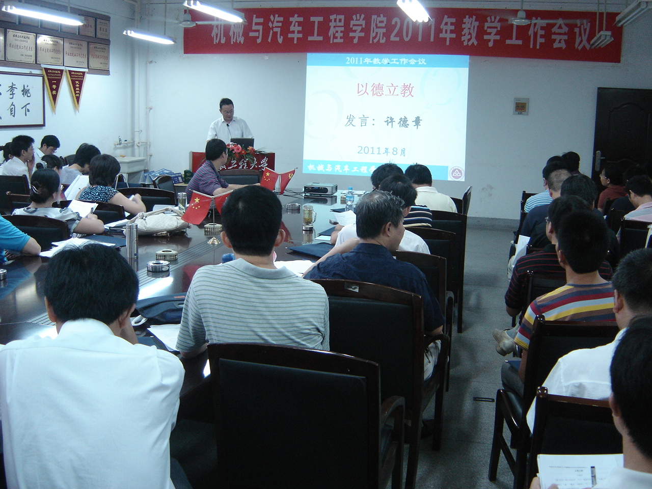 根据学校《关于召开2011年暑期教学工作会议的通知》(校教字〔2011〕71号)精神,机械与汽车工程学院2011年教学工作会议于2011年8月22-23日隆重举行。校党委副书记、校长干洪,教务处长柴阜桐应邀出席会议,参加会议人员有许德章院长、邓英扣书记以及机械与汽车工程学院全体教职工。