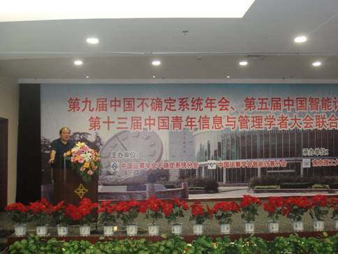 2011年7月27日至31日由中国运筹学会不确定系统分会、智能计算分会主办的第九届中国不确定系统年会、第五届中国智能计算大会、第十三届中国青年信息与管理学者大会联合会议在南京理工大学召开。本次年会旨在推动不确定理论、智能计算及应用的发展,加强数学科学、运筹学、信息科学及管理科学等学科交叉领域的研究,交流总结近年来我国研究工作者的最新成果,研讨未来发展趋势。全国近20个省、直辖市、自治区80余所高校和科研单位的近200名代表参加了会议,来自清华大学、武汉大学、同济大学、西安交通大学、南非University of Cape Town和美国Drexel University等国内外高校的18位专家作了大会邀请报告,其中我校费为银教授所作大会邀请报告的题目为《Optimal consumption and portfolio with partially observed real prices under ambiguity》。