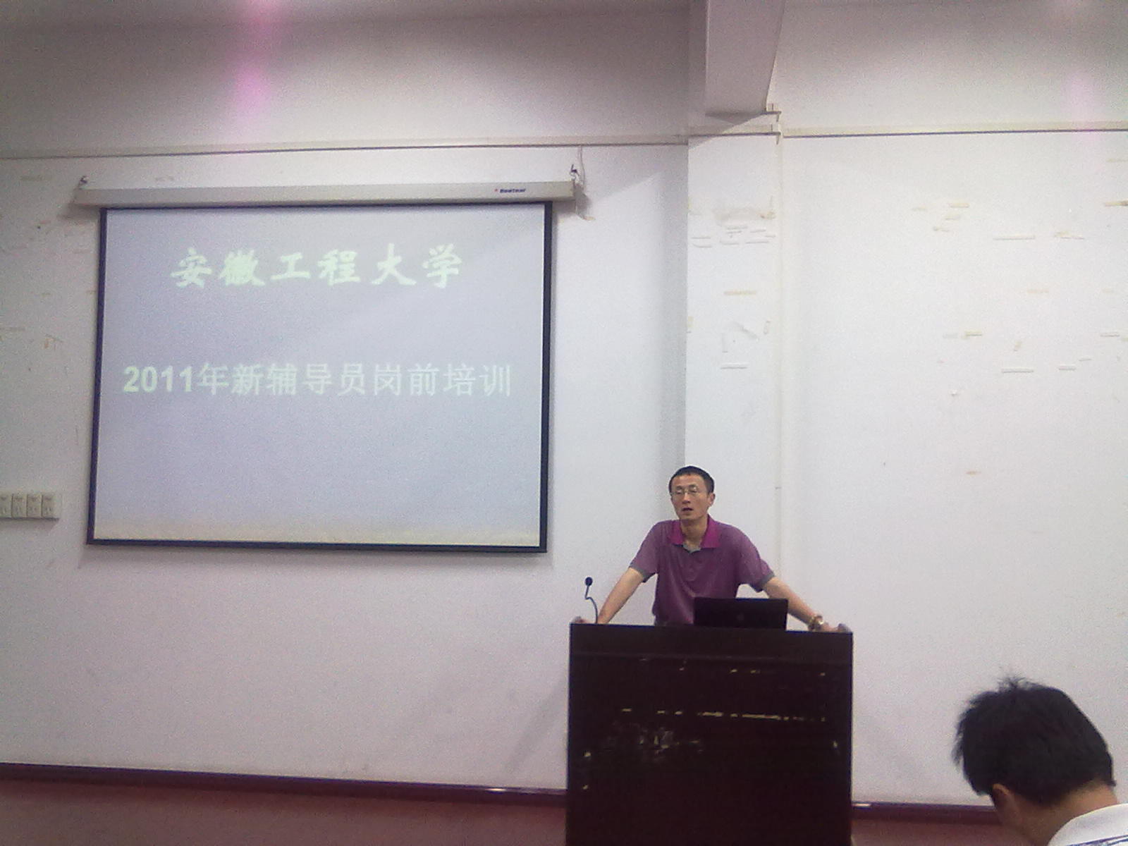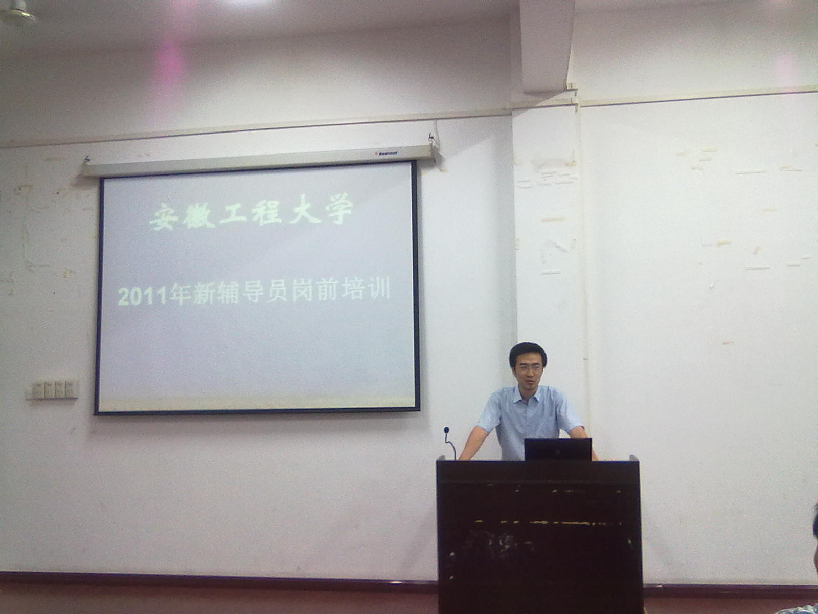 最后,胡家增老师对我校“三做”育人理念、“三做”教育的举措和成效进行了介绍,带领新辅导员学习了教育部2006年24号令《普通高等学校辅导员队伍建设规定》中关于辅导员工作的职责与要求。培训会上,学生处的杜松涛、张玉凤和汪隽老师分别就大学生心理健康教育、学生档案管理和家庭经济困难学生资助等工作进行了详细地介绍和指导。