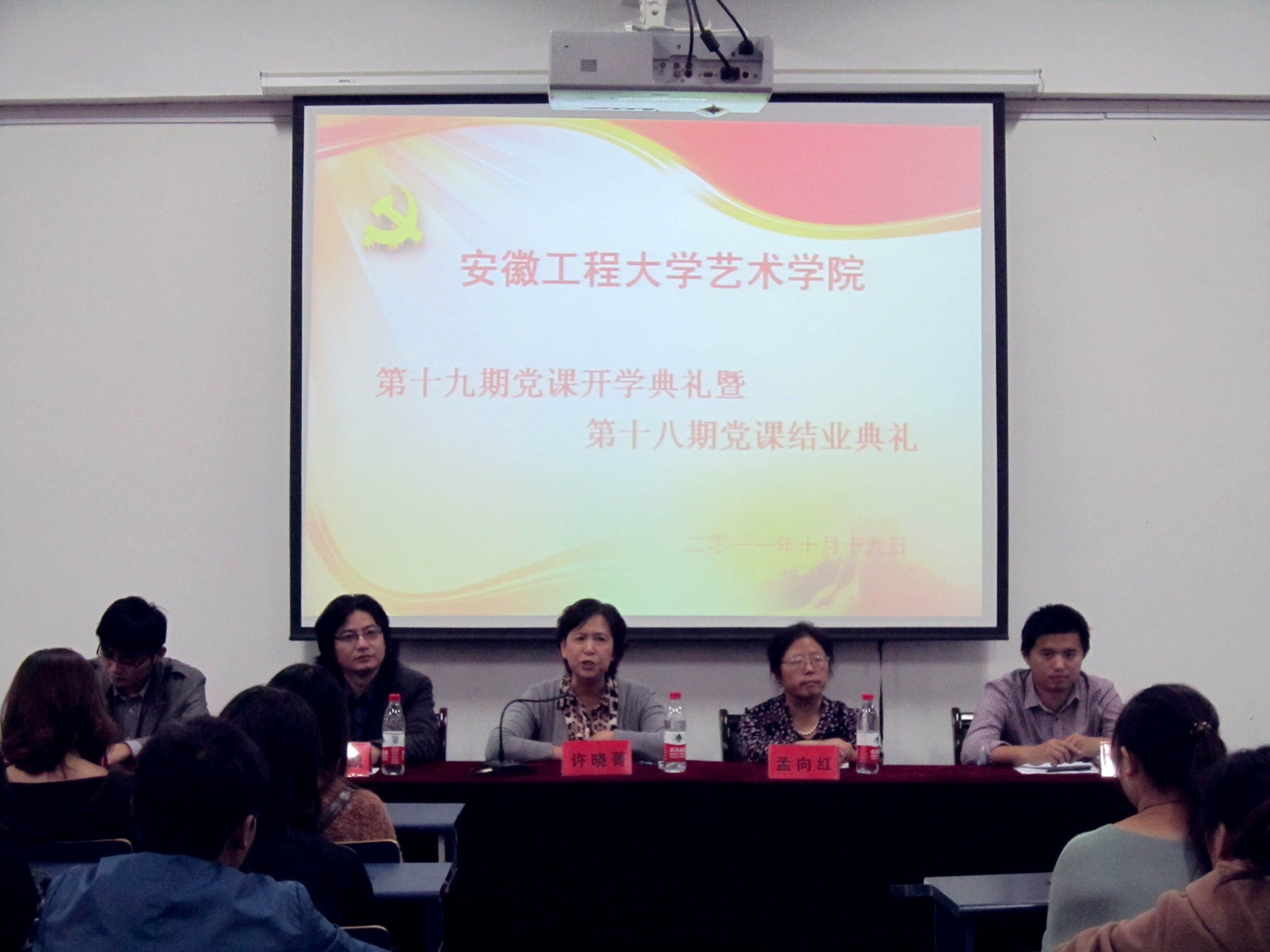 国歌响起,全体起立,在庄严的国歌声中典礼拉开帷幕。首先,迟传德宣读了第18期党课培训班优秀学员名单,同时为优秀学员代表颁发证书及奖品,并鼓励他们继续努力,将学习到的理论知识运用到实践生活中。接着,院党委书记许晓菁发表了重要讲话。对在座学员积极向党组织靠拢感到欣慰,并通过实际事例——台湾严正法师和牛顿的故事,告诉我们信仰的重要性,希望学员们把成为党员是一种荣誉,更是一种责任,要全心全意为人民服务,将学习到的理论知识运用到实践学校当中,力争早日加入中国共产党,为祖国建设添砖加瓦。