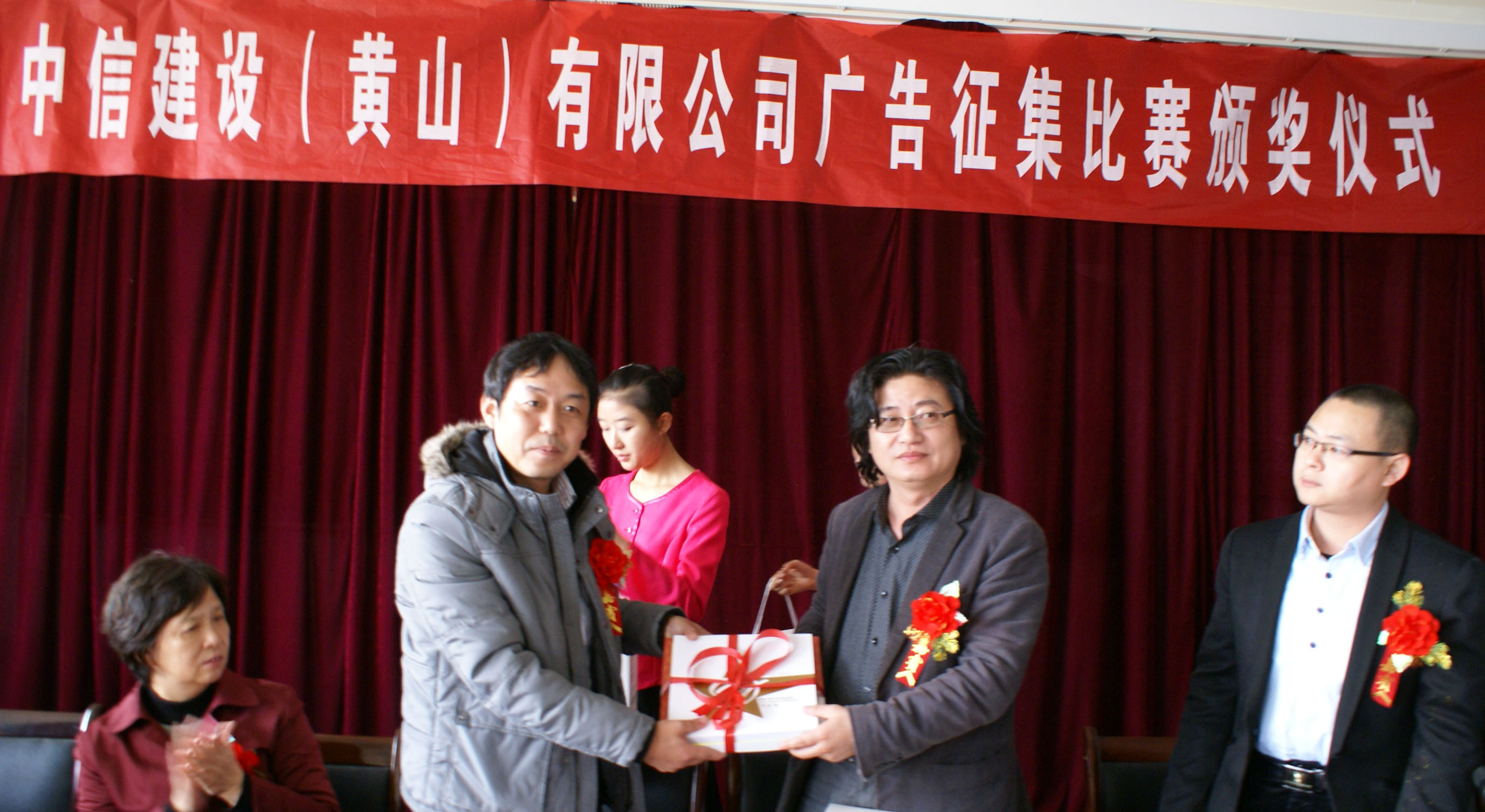 会上,党委书记许晓菁教授对中信建设(黄山)有限公司为我院学子提供的作品创作机会表示感谢,对获奖同学和指导教师表示热烈的祝贺,并高度赞赏了中信建设(黄山)有限公司取得的成就。黄川副总经理代表企业感谢学校、学院对公司企业文化发展,尤其是广告征集活动的大力支持,高度评价了参赛的作品质量,希望能通过各项交流合作活动进一步促进企校之间的互惠双赢。广告系主任张国斌和2009级研究生沈珂分别代表指导教师和获奖学生发言。