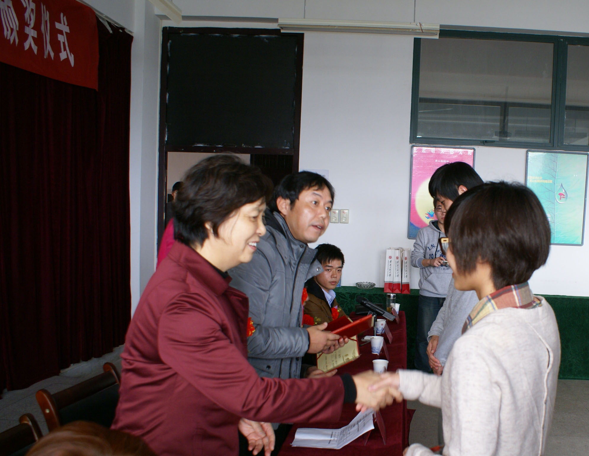 最后,学院领导与嘉宾向获奖师生颁发证书和奖金。