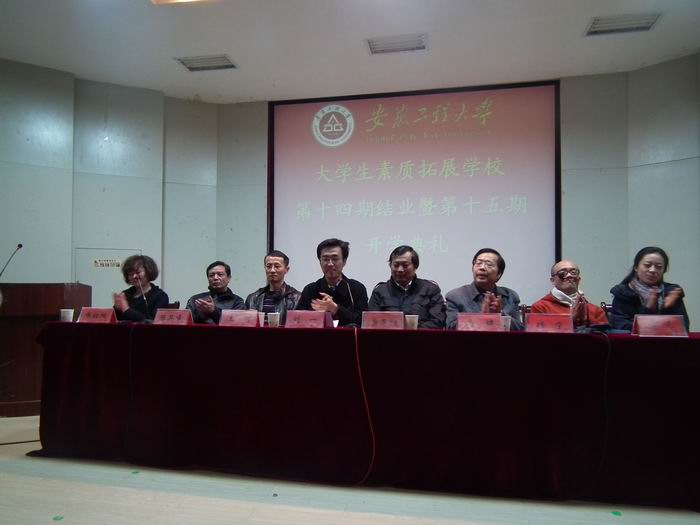 首先,第十四期班长对一年来认真严谨的班委工作做了汇报,之后第十四期优秀学员代表动情的发言,感慨了一年来在素质拓展学校学习的收获,表达了眷恋和不舍。学校教务处处长柴阜桐老师的讲话更是鼓舞了在场的每一位学员,校党委宣传部校报编辑部主任马健老师用四组洒脱的诗句鼓励新学员们,场内气氛热情而浓烈。