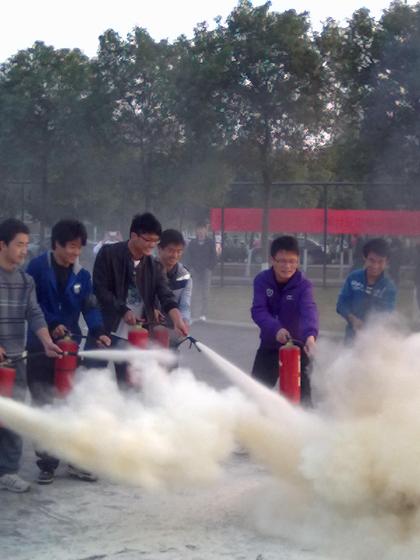 此次活动由消防演习拉开帷幕。校消防保卫处工作人员使用浓烟作为火灾发生的信号,宿舍内的同学们迅速应对,各个寝室由寝室长统一组织,寝室成员采取了湿毛巾捂口鼻的正确方法离开现场,到达指定地点。接着校消防保卫处工作人员向全体学生宣传了寝室防火救火基本知识及相关要求,演示了消防栓的使用,介绍了干粉灭火器的操作步骤。随后,在校消防保卫处工作人员的带领下,全体同学携带干粉灭火器到达土操场进行模拟演习。同学们认真地了解操作原理并以寝室为单位进行了操作,圆满地完成了校消防保卫处工作人员的要求目标。至此,此次活动圆满落下帷幕。