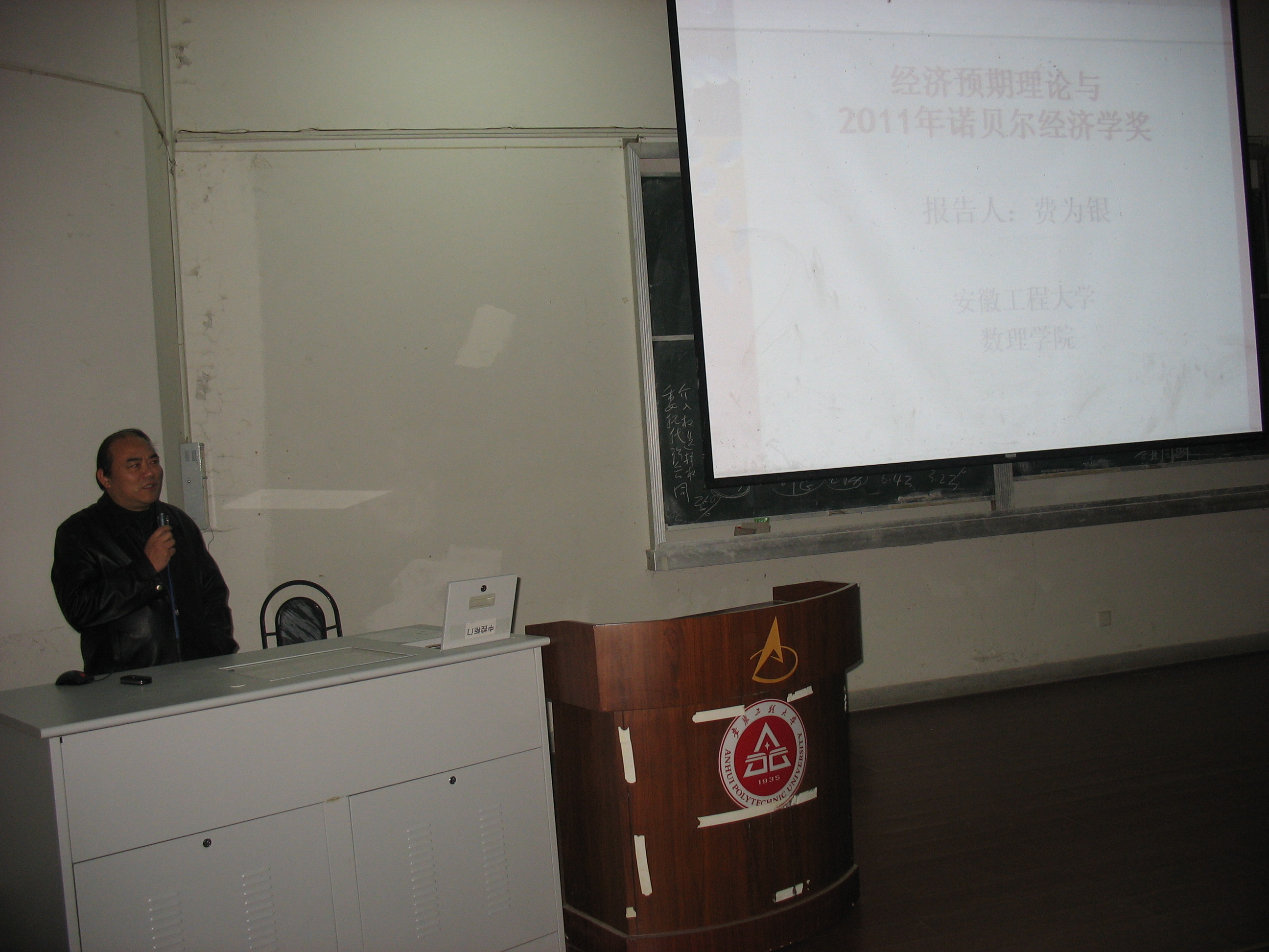 由校团委主办,数理学院团委承办的“教授论坛”报告会于11月30日晚7:00在2J报告厅举行。数理学院院长费为银教授作了题为《经济预期理论与2011年诺贝尔经济学奖》的学术报告。数理学院300余名同学聆听了报告。