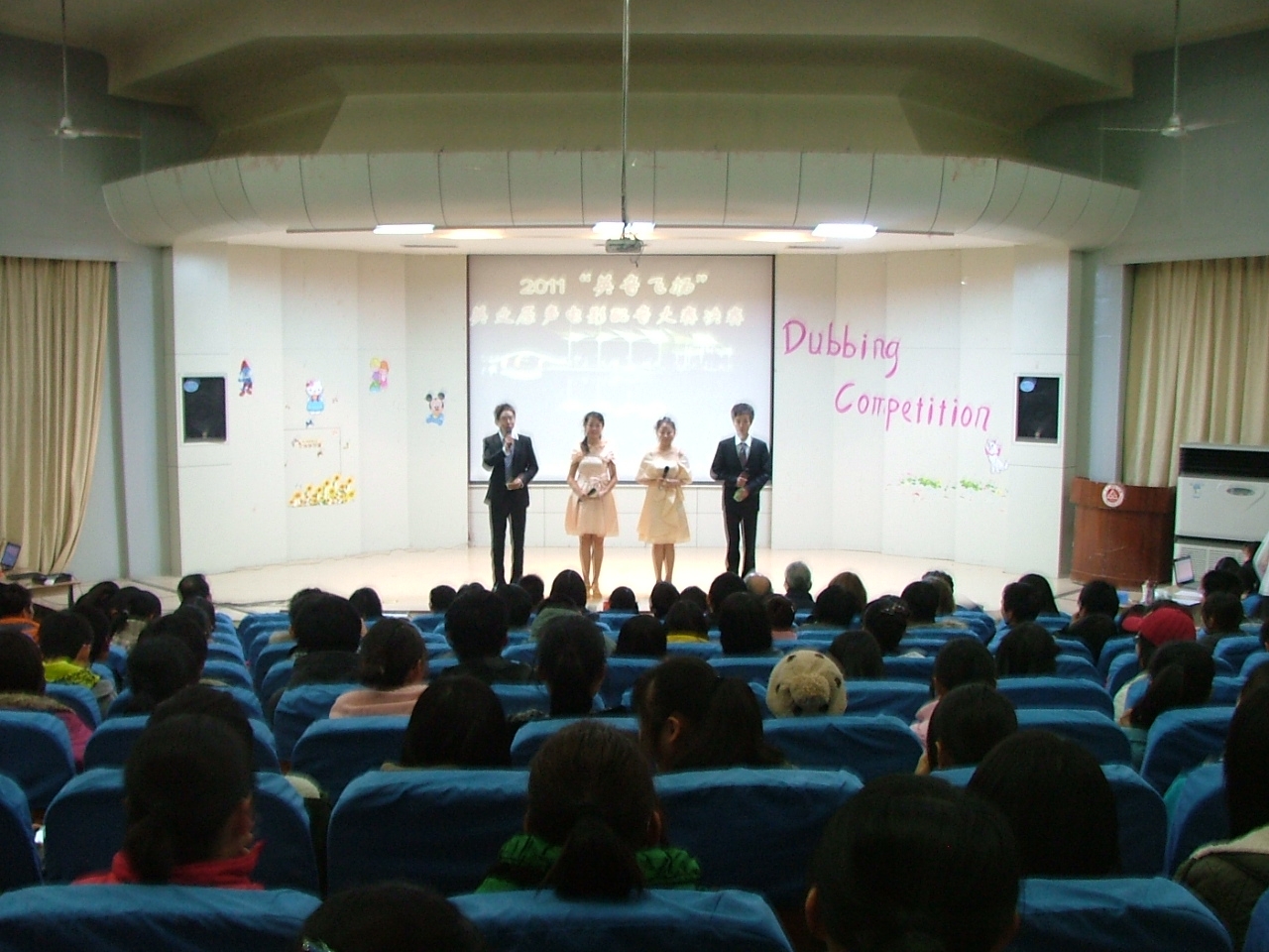 11月30日晚7:00,外国语学院2011年“英音飞扬” 英文电影配音大赛决赛在学术报告厅举行。学院党政领导汪玉明、刘进、金成星、谈丽华出席观看比赛,院英语系领导、部分骨干教师和外教应邀担任大赛评委。作为2011年大学生科技节院级特色品牌活动,大赛得到了同学们的大力支持和广泛参与,参赛选手除了来自外国语学院和机电学院的英语专业学生,还有通过“柠檬树”外文社、EYE口语协会、翻译社和T-CET驿站等学生社团参赛的非英语专业学生,共有28组作品参加了初赛,经过激烈角逐有12组作品成功晋级决赛。