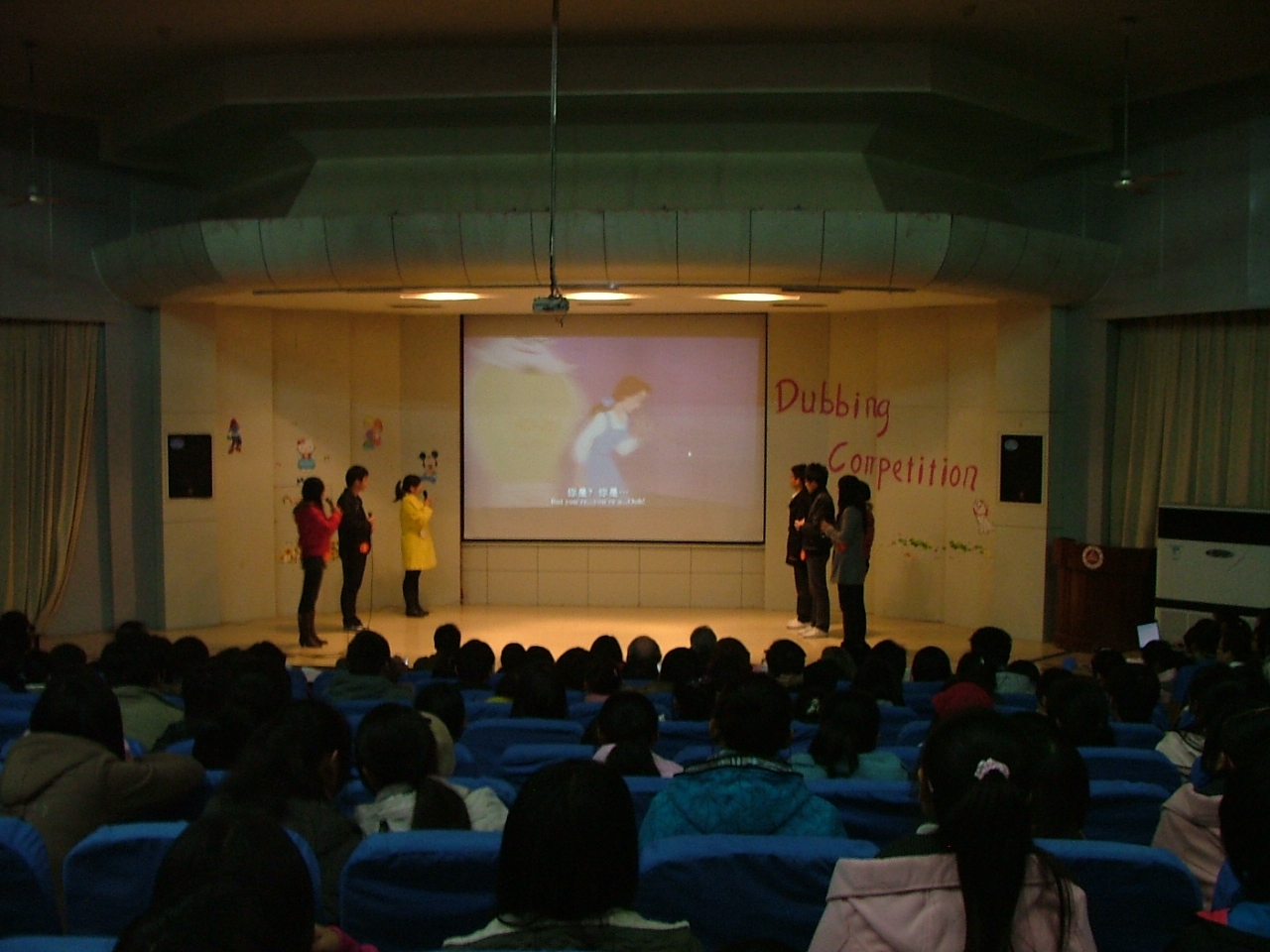 决赛采用双语主持,在主持人一一介绍莅临现场的各位评委和嘉宾后,在一片掌声中正式开始。比赛作品选材广泛,既有经典的传统佳作,也有时尚的现代大片;既有扣人心弦的情节片段演绎,也有引人入胜的故事场景模拟。《Alice In Wonderland(爱丽丝梦游奇境记)》向观众展现了一个奇妙而独特的世界,《Beauty and the Beast(美女与野兽)》讲述了非凡的爱情故事,《Finding Nemo(海底总动员)》带着观众畅游了奇妙的海洋生活,滑稽的《Kungfu Panda(功夫熊猫)》惹得观众们捧腹大笑。同学们纯正专业的发音、惟妙惟肖的模仿、全心投入的表演赢得了观众们的阵阵喝彩。比赛间隙还穿插了饶有趣味的英语绕口令互动环节,特邀生化学院艺术团表演了活力四射的歌舞《快乐崇拜》。比赛竞争激烈,气氛活跃。大赛评出一等奖2 名、二等奖4名、三等奖6名和最佳语音奖4名,并进行了现场颁奖。