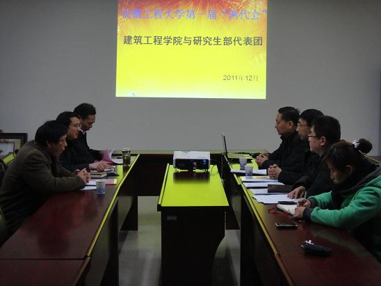 12月10日下午,建工学院与研究生部代表团在建工学院会议室召开了第一次全体代表会议。会议由代表团团长、建工学院党委书记徐达奇主持,校领导干洪参加了代表团的讨论。