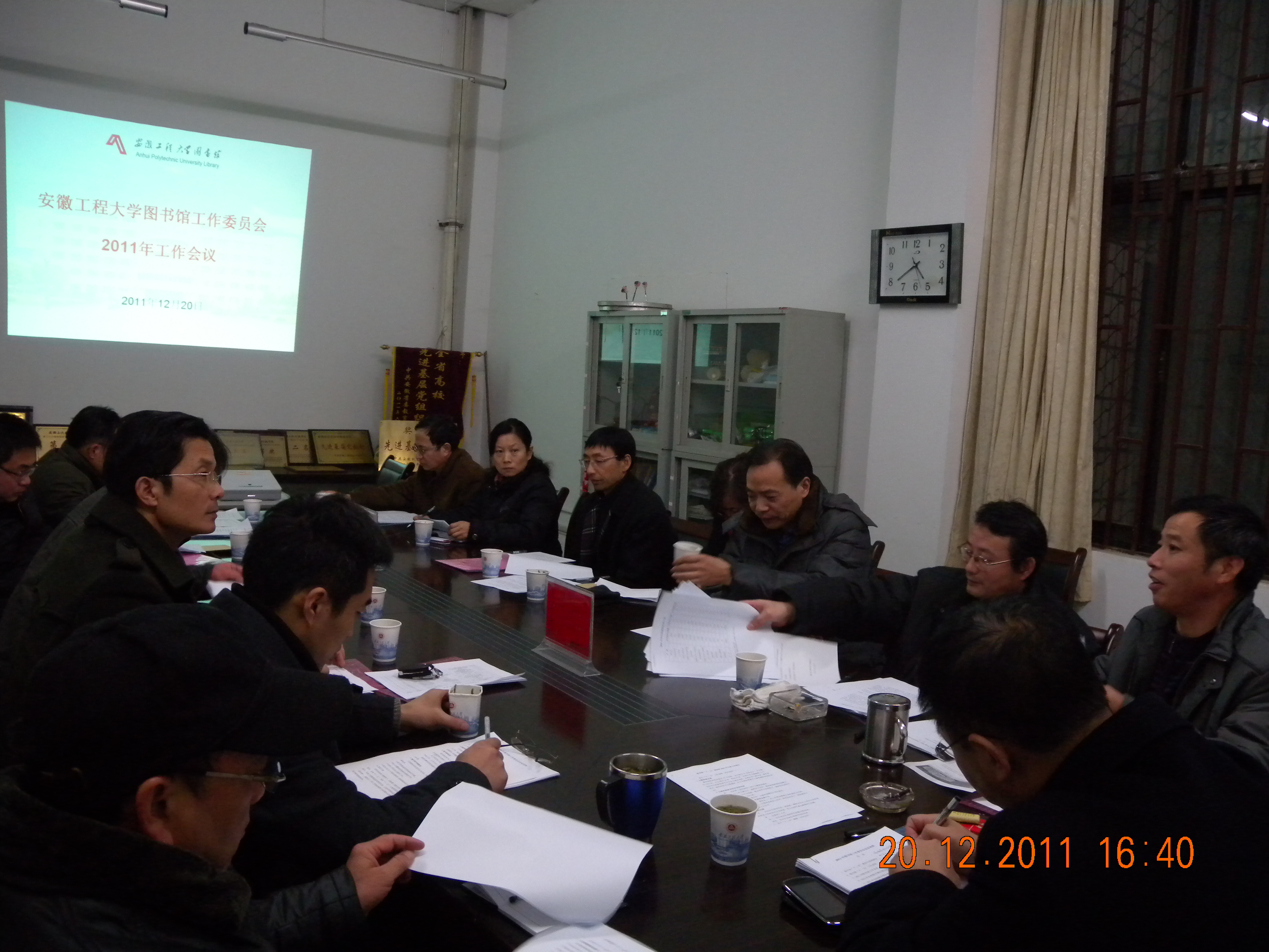 12月20日,校图书馆工作委员会在图书馆会议室召开2011年工作会议,校图工委委员参加会议,副校长叶常林出席会议并发表重要讲话。