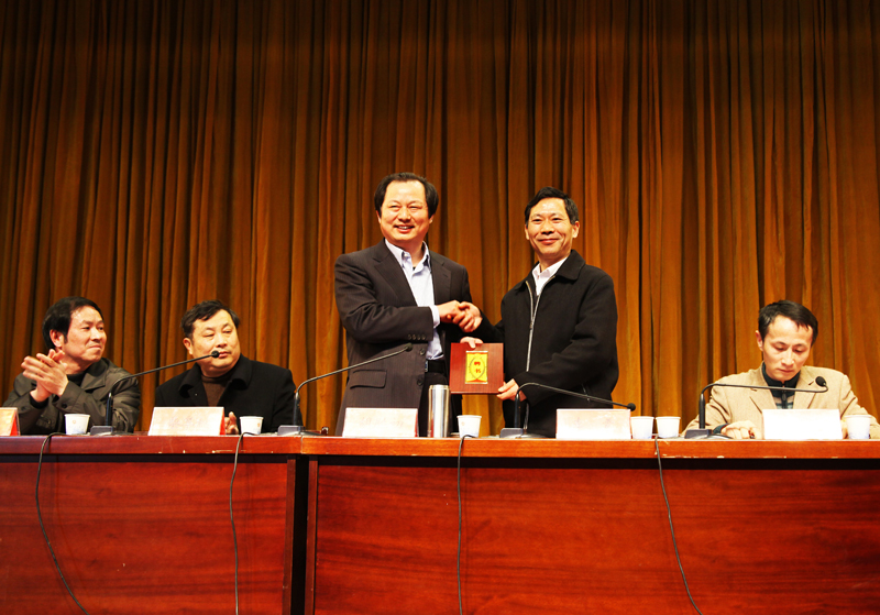 首先,机电学院党委书记张国友介绍无锡市虎皇漆业有限公司及“虎皇漆业”奖助学金设立情况。在同学们的期待和热烈掌声中,副校长李震和胡胜初董事长共同为“虎皇漆业”奖助学金揭牌。随后,副校长李震向胡胜初先生颁发了机电学院客座教授聘请证书,柴阜桐处长和王河处长分别向“虎皇漆业” 邱作为先生、庄浩勋先生颁发了本科生导师聘请证书。
