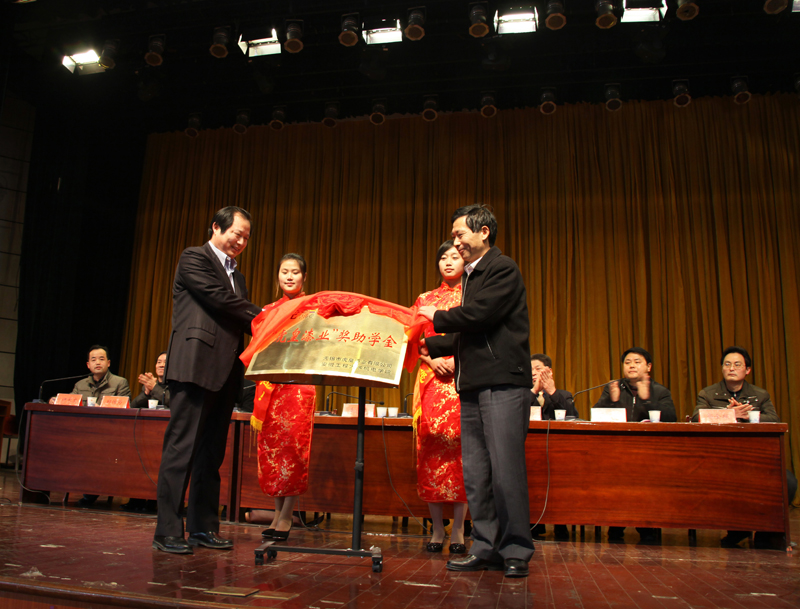 最后,副校长李震作了重要讲话。他首先代表学校对亲临现场的无锡市皇漆业有限公司胡胜初董事长及各位领导表示热烈欢迎,对关心支持高等教育事业的无锡市虎皇漆业有限公司及领导表示崇高敬意。他说“虎皇漆业”在我院设立奖助学金,不仅是给同学们经济上的帮助,更蕴含“虎皇漆业”对同学们的一份爱心,一份期待,希望同学们把这份爱心传递下去。他对胡董事长强烈的社会责任感及对人才培养的高度重视大加赞赏,希望能够和“虎皇漆业”进一步加强在人才培养、科学研究、服务社会等方面全面合作。他还希望同学们在践行我院的“三做”育人理念;主动关心社会、到社会中实践增长才干;培养自己健全人格等三个方面加强努力,成为一个能够适应社会发展需要的有用人才。