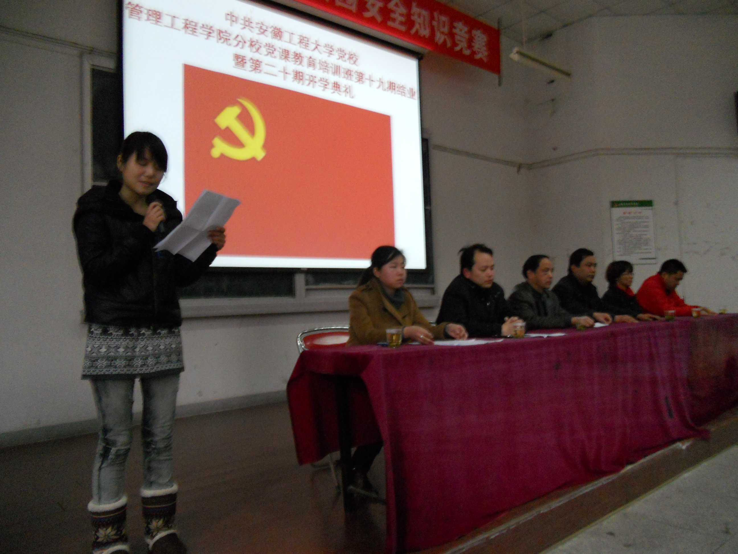 物流102班谢晓悦同学代表第十九期党校学员向大家汇报了自己参加党校学习的心得。谢晓悦同学说,通过党校系统的学习,她对党的章程、党的性质、怎样履行党员义务以及怎样行使党员权利等有了更深的理解。她告诉对新学员们,要珍惜参加党校学习这次机会,不要把参加党校学习看做是炫耀的资本,要脚踏实地的深入学习党的知识,坚定信念、毫不动摇,在班级中发挥模范作用,争取早日通过党的考核。第二十期党校学员国贸111周志兵代表新学员们表达了认真参加党校学习的决心,他引用清末爱国志士梁启超《少年中国说》中的名句“少年强则国强,少年独立则国独立”与大家共勉。
