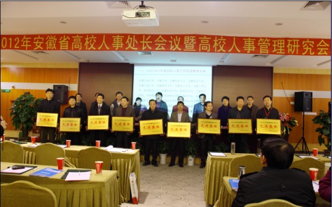 2012年3月23日至25日,全省高校人事处长会议暨高校人事管理研究会年会在我校召开,安徽省教育厅及安徽省高校人事管理研究会表彰了全省高校人事工作先进集体与先进个人。继2010年度我校受到省教育厅表彰之后,此次我校人事处再次荣获“2011年度安徽省高校人事工作先进集体”荣誉称号和荣获“2011年度安徽省高校人事工作先进个人”荣誉称号,这是省教育厅对我校人事管理工作突出表现和优异成果给予的充分肯定和高度评价,人事处全体同仁将再接再厉,勤奋工作,力争为学校赢得更多荣誉。