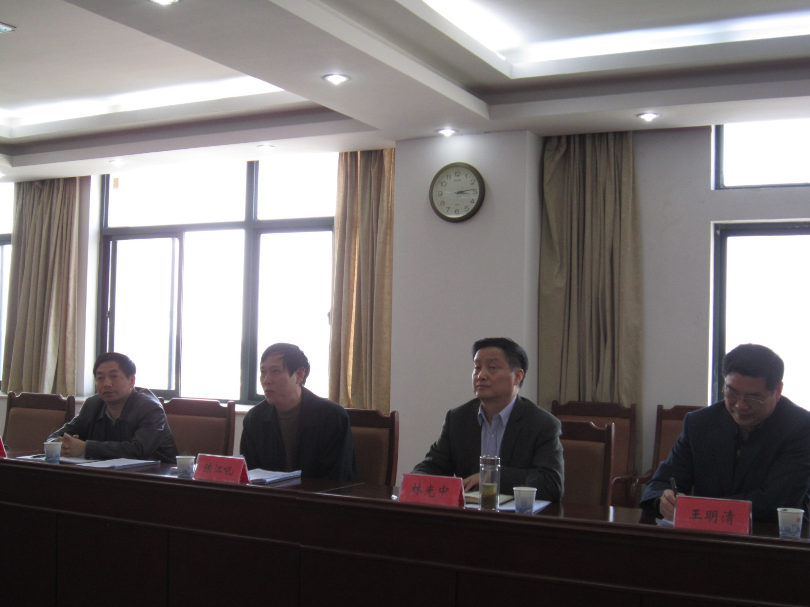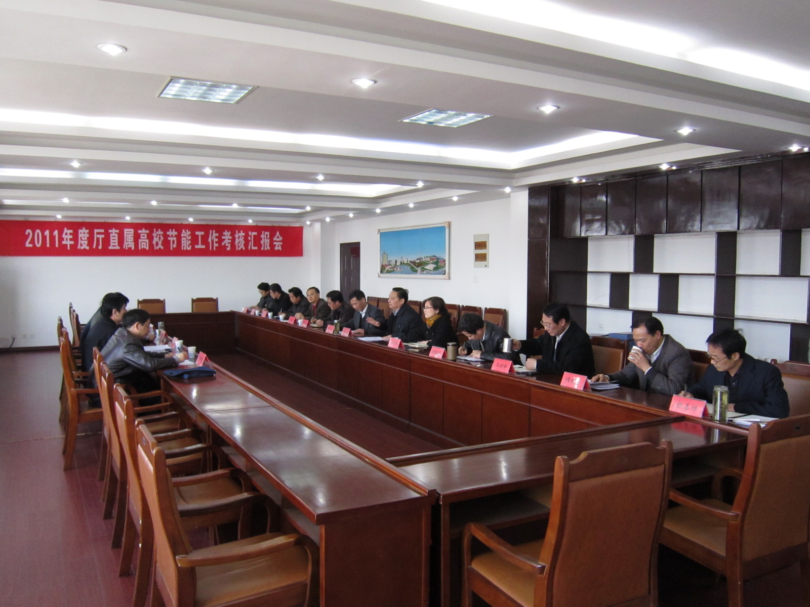 3月31日下午,省直属高校节能工作考核组第五组组长、合肥师范学院副院长陈江吼,考核组成员、省教育厅发展规划处调研员林光中、皖西学院后勤管理处处长左绪东、安徽科技学院后勤管理处处长王明清一行4人对我校2011年度节能工作进行了现场考核。学校党委副书记、校长干洪,副校长李震,学校“十二五”节能工作领导小组成员在A座1215会议室热情接待了考核组一行。