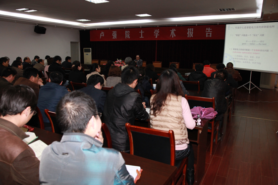 卢院士是国内外公认的电力系统非线性最优控制学科体系的开拓者和奠基人。出版专著4部,其中一部为美国KLUWER出版社出版发行。曾获国家优秀科技图书一等奖、国家自然科学二等奖两次及国家优秀教学成果特等奖等。近年来,创建了电力系统混成控制理论,并用于东北互联系统、上海电力系统和深圳电网智能调度自动化系统。卢院士的报告结合自己的科研实践,深入浅出地对电力系统非线性最优控制学科体系进行了论述,阐述了智能电网技术及软件产业最新发展趋势,对我校师生起到了深深的启迪作用。随后卢院士回答了教师提出的问题,报告持续了近两个小时,在热烈的掌声中结束。