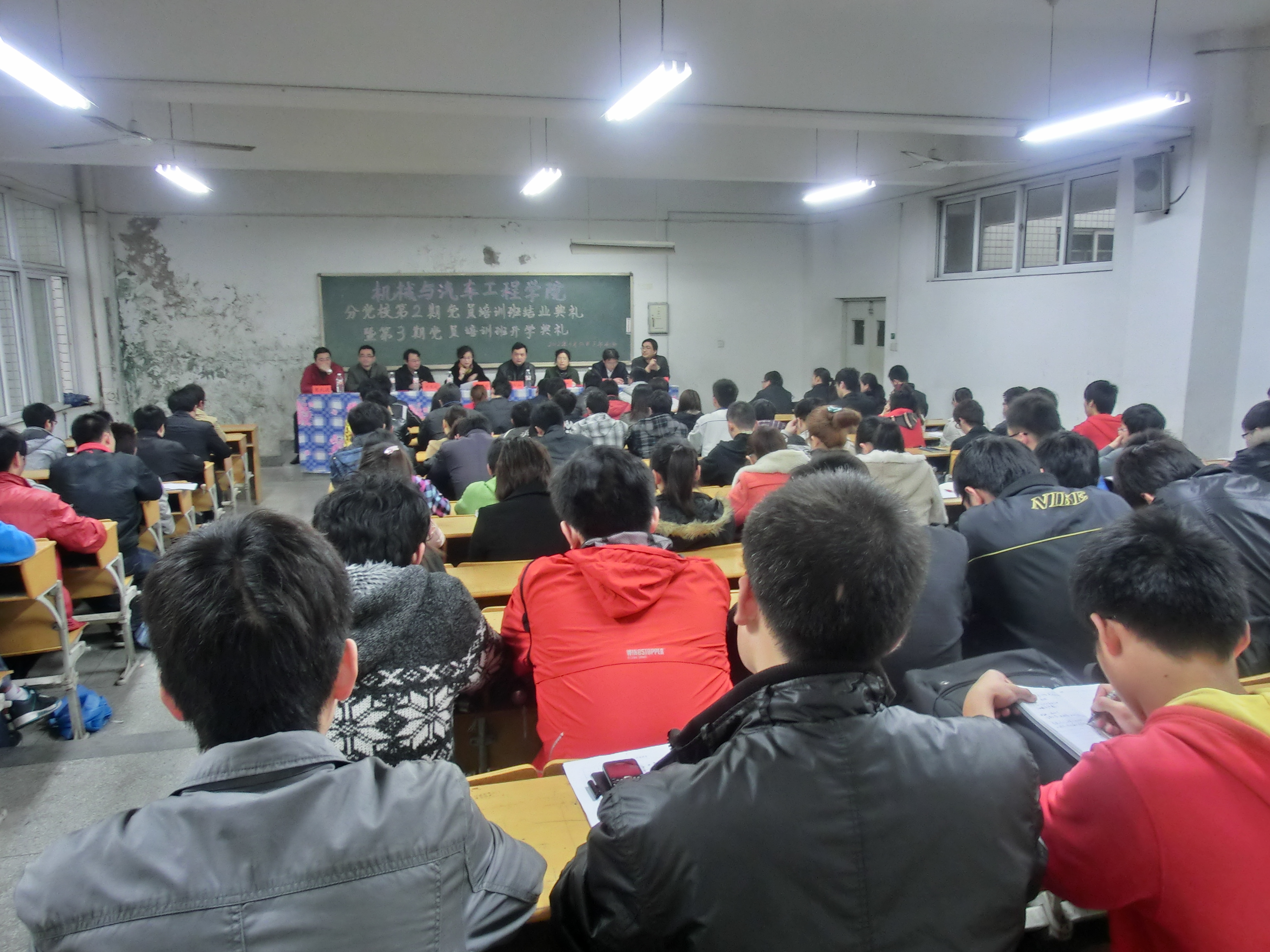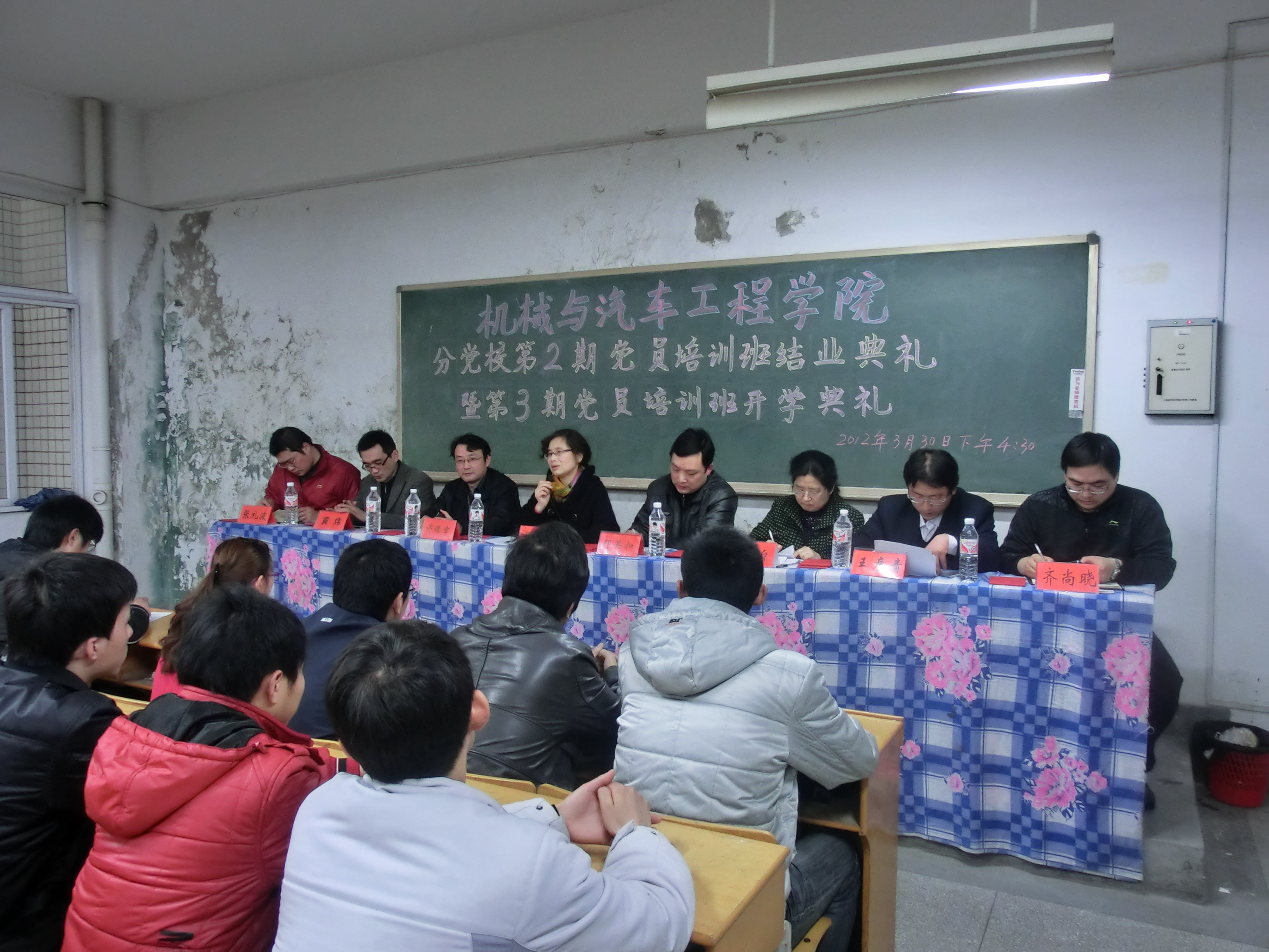 3月30日下午4:30,机械与汽车工程学院分党校第3期党员培训班开学典礼暨第2期结业典礼在4教512教室隆重举行。出席典礼的领导和老师有:校党委委员、宣传部部长、校党校副校长苏国红,院党委书记、分党校校长邓英扣,院长许德彰,院党委副书记周怡,学生第一党支部书记黄炜,学生第三党支部书记张礼波,学生第四党支部书记齐尚晓,以及各年级辅导员老师。典礼由学生第二党支部书记、本期党课班主任王彦青主持。