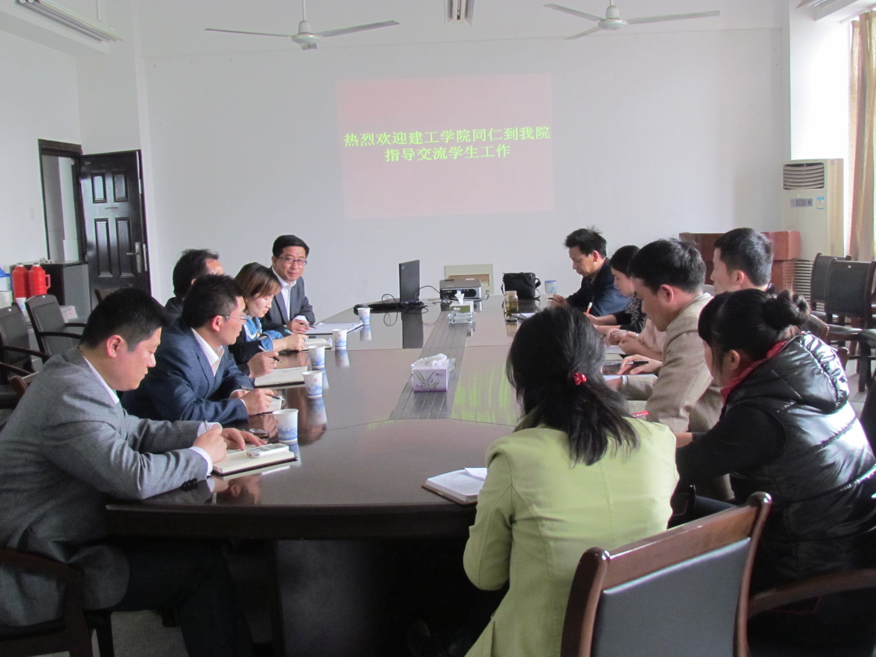首先,章书记对建工学院同仁的到来表示热烈的欢迎,他说,在新形势下,大学生思想政治教育工作面临诸多挑战和机遇,作为学生工作者要进一步增强紧迫感和责任感,坚定不移地把社会主义核心价值体系融入到学生工作全过程,我院一直努力扎扎实实做好各项工作,争取不断提升学生工作的科学化水平。随后,我院辅导员结合自身工作实际,分别从学风建设、学生干部培养、日常管理、党员发展、心理干预、大学生养成行为教育等方面总结了自己的做法。
