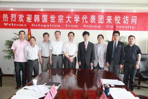 5月8日下午,由韩国世宗大学招生处处长金俊烨率领的代表团一行3人在省教育厅外事处聂鑫的陪同下来我校访问,校长干洪亲切会见了代表团一行。5月9日上午,受校长干洪委托,副校长马健及相关部门负责人在A座1212会议室与韩国世宗大学代表团举行座谈。