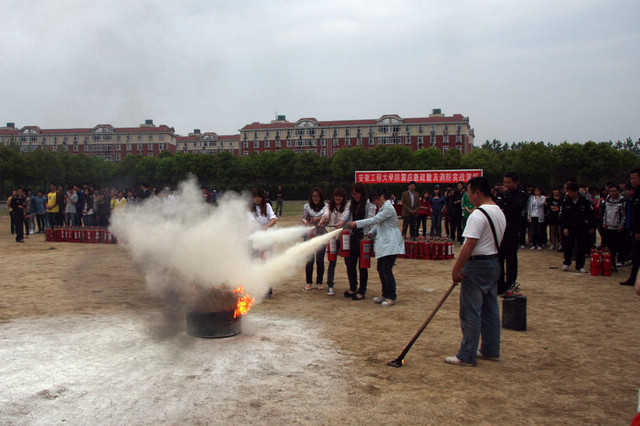 下午生化学院、管理学院、计算机学院、数理学院、研究生院、体育学院。全校各学院严格按照学校演练方案全部完成防震避险、应急疏散、消防实战三个科目的演练。演练实施期间各学院狠抓落实,扩大防震避险基本常识的宣传教育学习面,重视演练安全,实施方案细致,全校演练过程平稳有序,防震与消防实战演练结合,增强了参演同学的兴趣,同时使参演同学了解掌握了消防水枪的使用要领,亲身感受了干粉灭火器的使用。保卫处还发放了消防“四个能力建设”宣传卡。