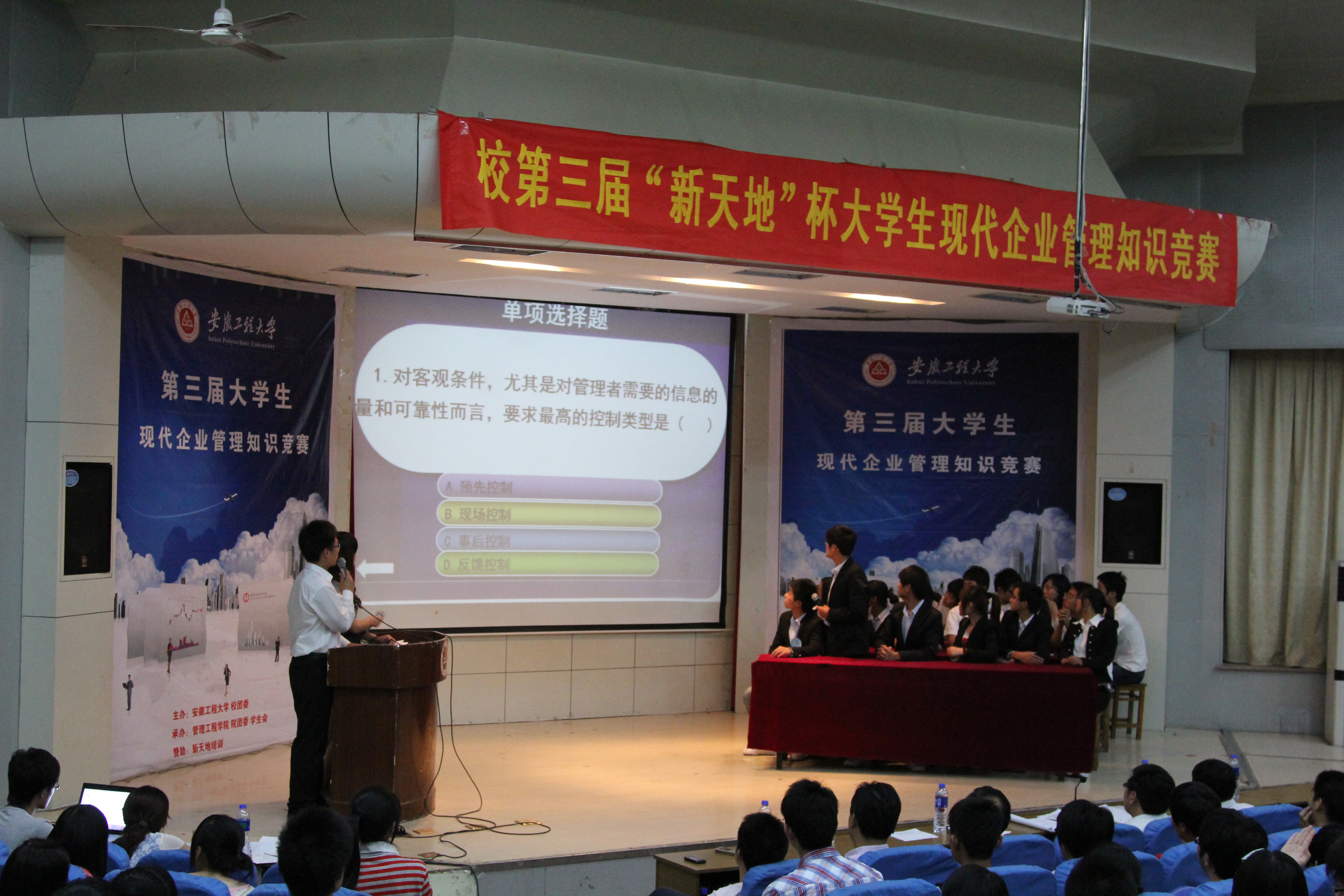 为激发我校学子学习企业管理知识的热情,提升同学们的综合素质,由校团委主办、管理工程学院承办的校第三届大学生现代企业管理知识竞赛决赛于