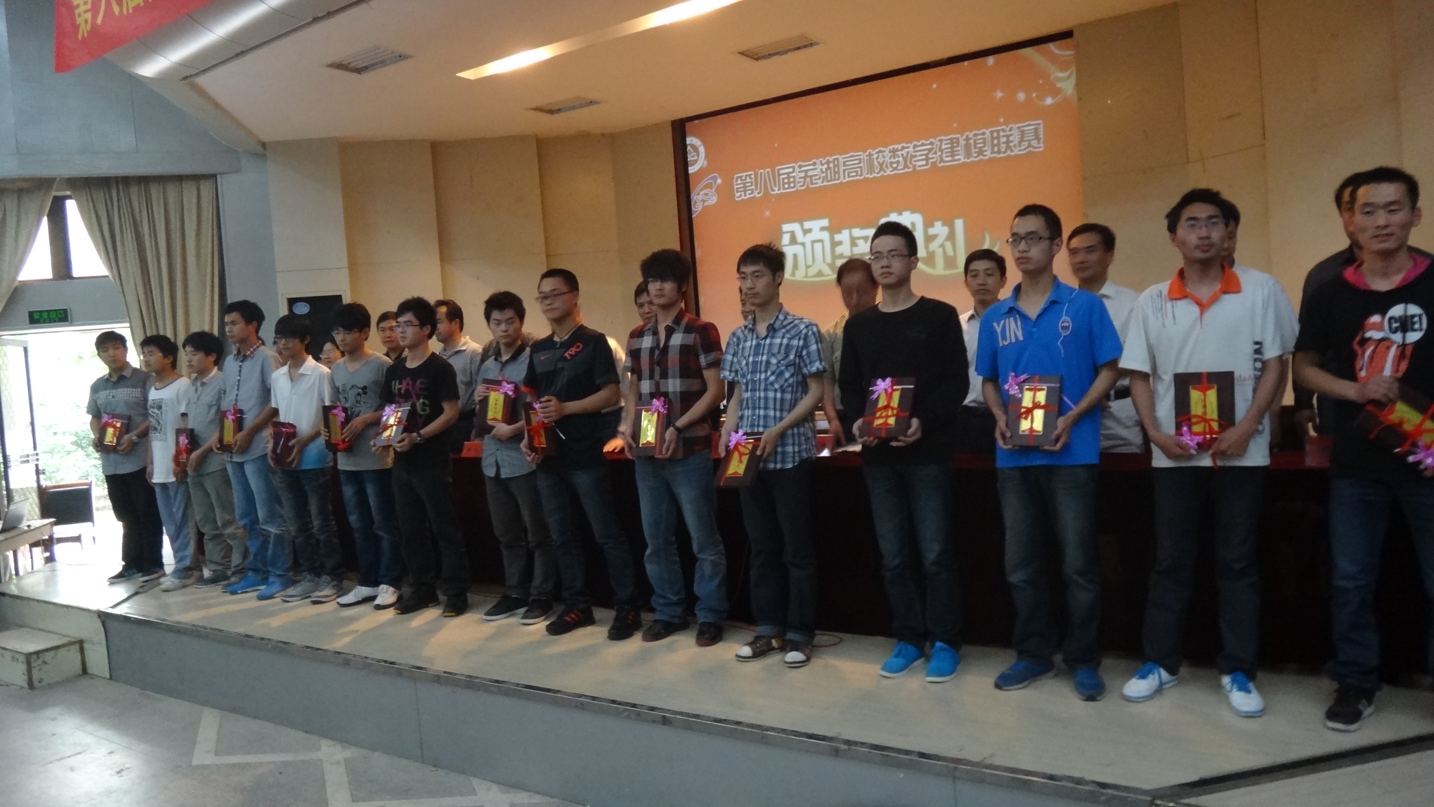最后,与会的各位领导嘉宾为在本次联赛中获得一、二、三等奖的队伍以及全国大学生数学建模竞赛安徽赛区获奖队伍代表颁发了证书和奖品。