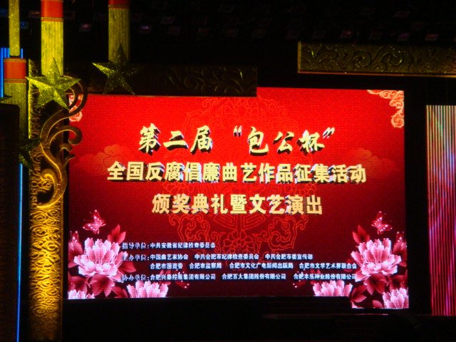 集体观看了在合肥大剧院隆重举行的第二届“包公杯”全国反腐倡廉曲艺作品征集活动颁奖典礼暨文艺演出,中纪委副书记李玉赋,省委常委、省纪委书记王宾宜,省委常委、市委书记吴存荣出席并为获奖作者颁奖。