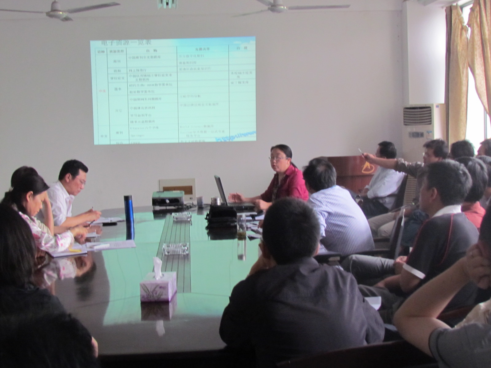 2012 5 23 下午,学院邀请图书馆信息与技术服务部主任章靖平老师做了一场“高效利用我校图书馆资源”的专题辅导报告,报告在学院会议室举行,由学院副院长薛正莲教授主持,学院全体教师都参加了报告会。