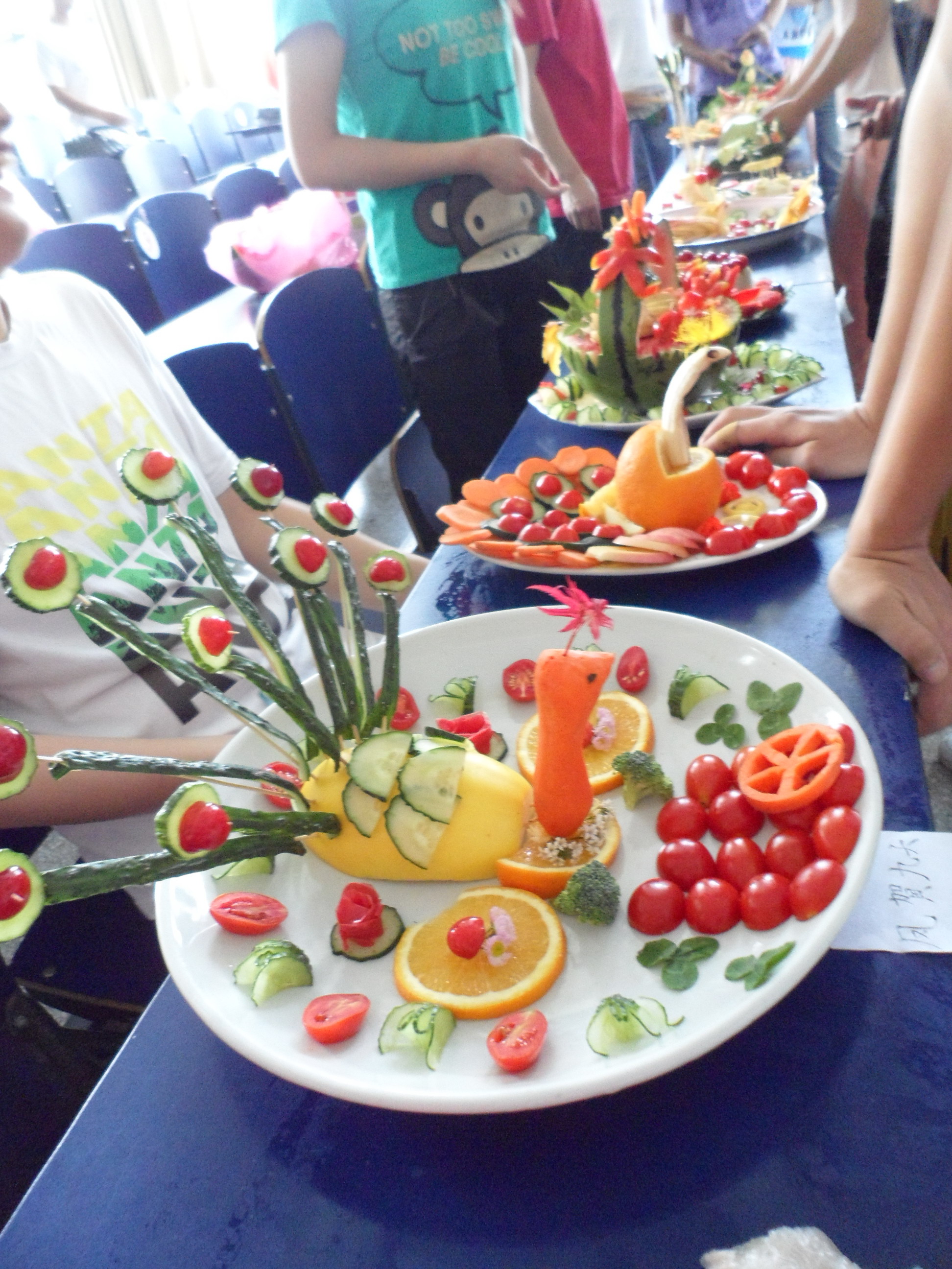 5月27日下午2:30,由建筑工程学院举办的蔬果拼盘大赛在5教117室火热开幕,院学生会主席任梦,宣传部长阮守宇,文艺部长曾斌以及院礼仪队黄玲玲担任评委。