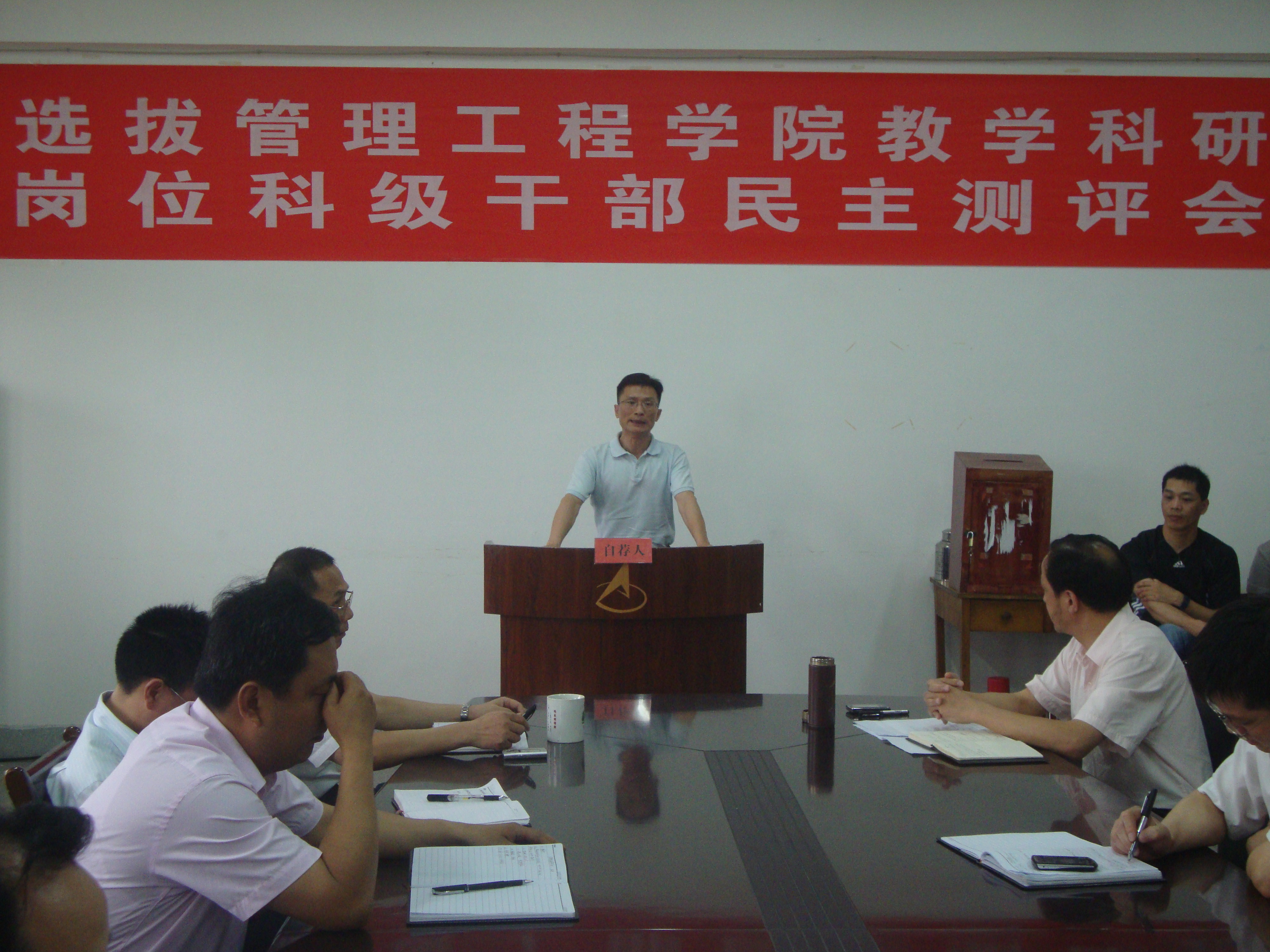 6 11 下午,管理工程学院召开选拔教学科研岗位科级干部民主测评会,会议由党委书记汪张林主持,全院教师参加了会议。