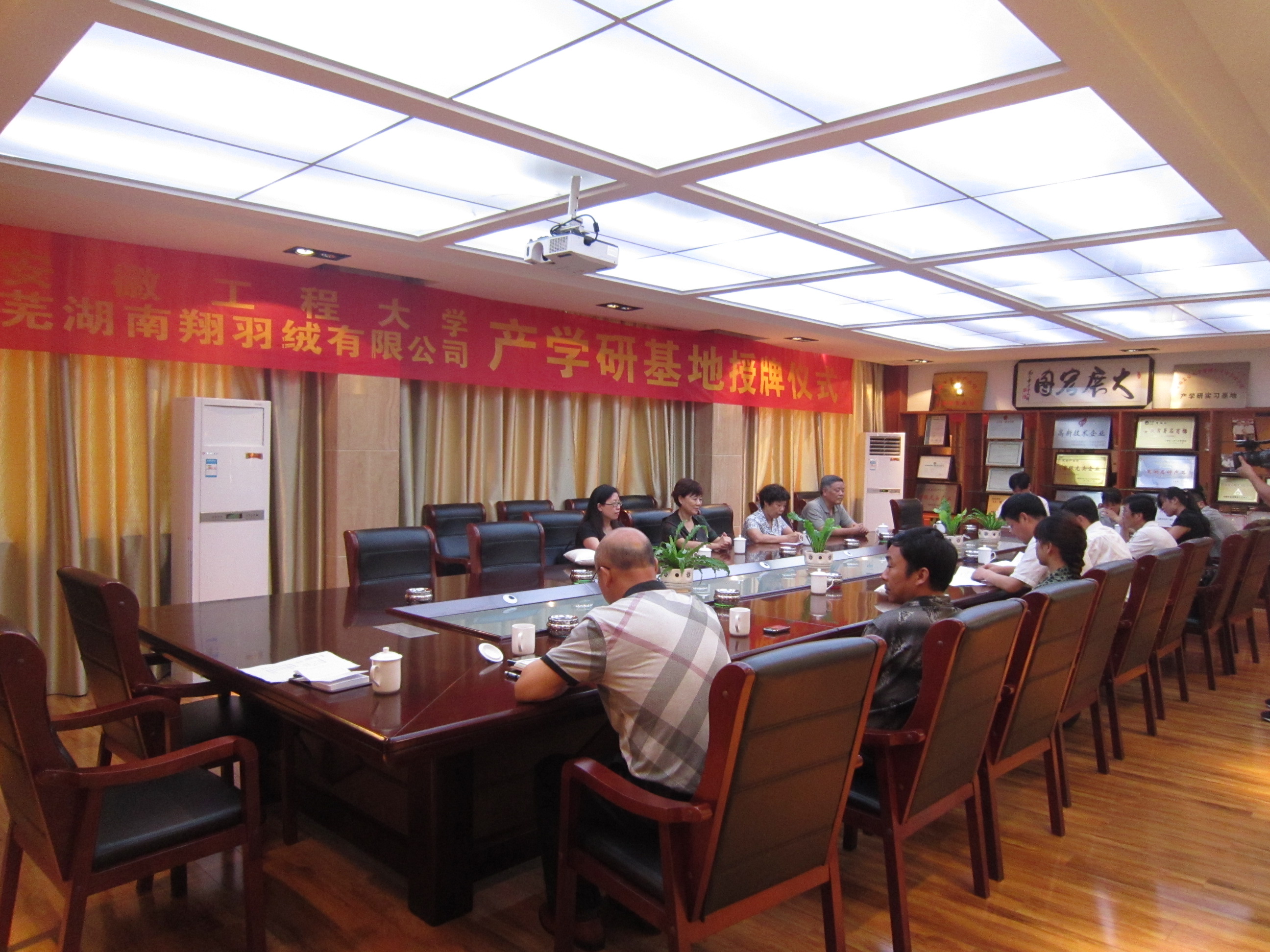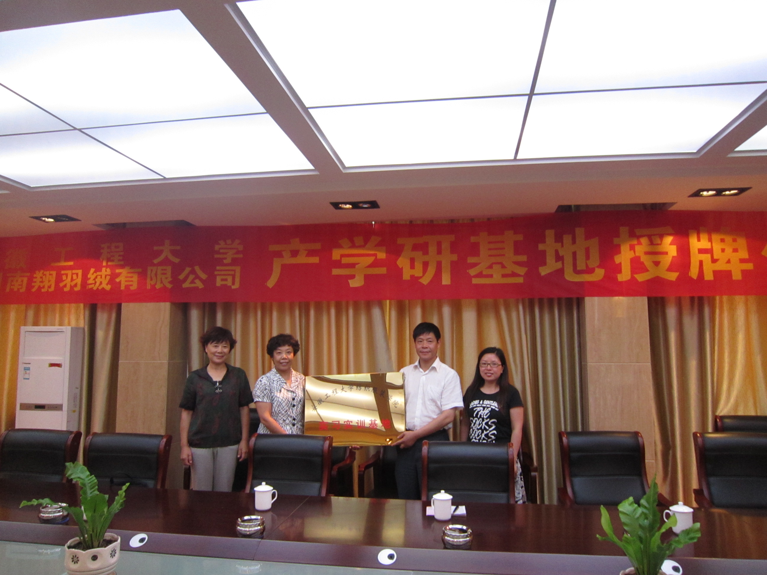 6月29日上午,纺织服装学院—芜湖南翔羽绒有限公司实习实训基地挂牌仪式在芜湖南翔羽绒有限公司隆重举行,参加仪式的有:南陵县政府副县长潘怀中、南陵县科技局局长丁韶东,芜湖南翔羽绒有限公司总经理刘建国,学院领导余新霞、毕松梅、袁惠芬,纺织面料重点实验室主任许德生等。