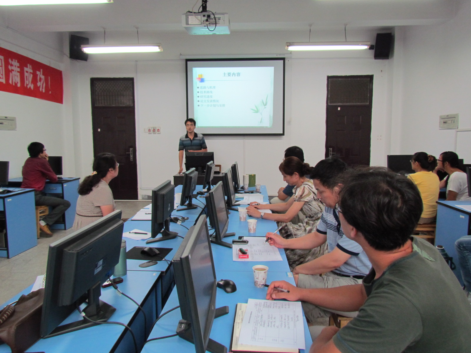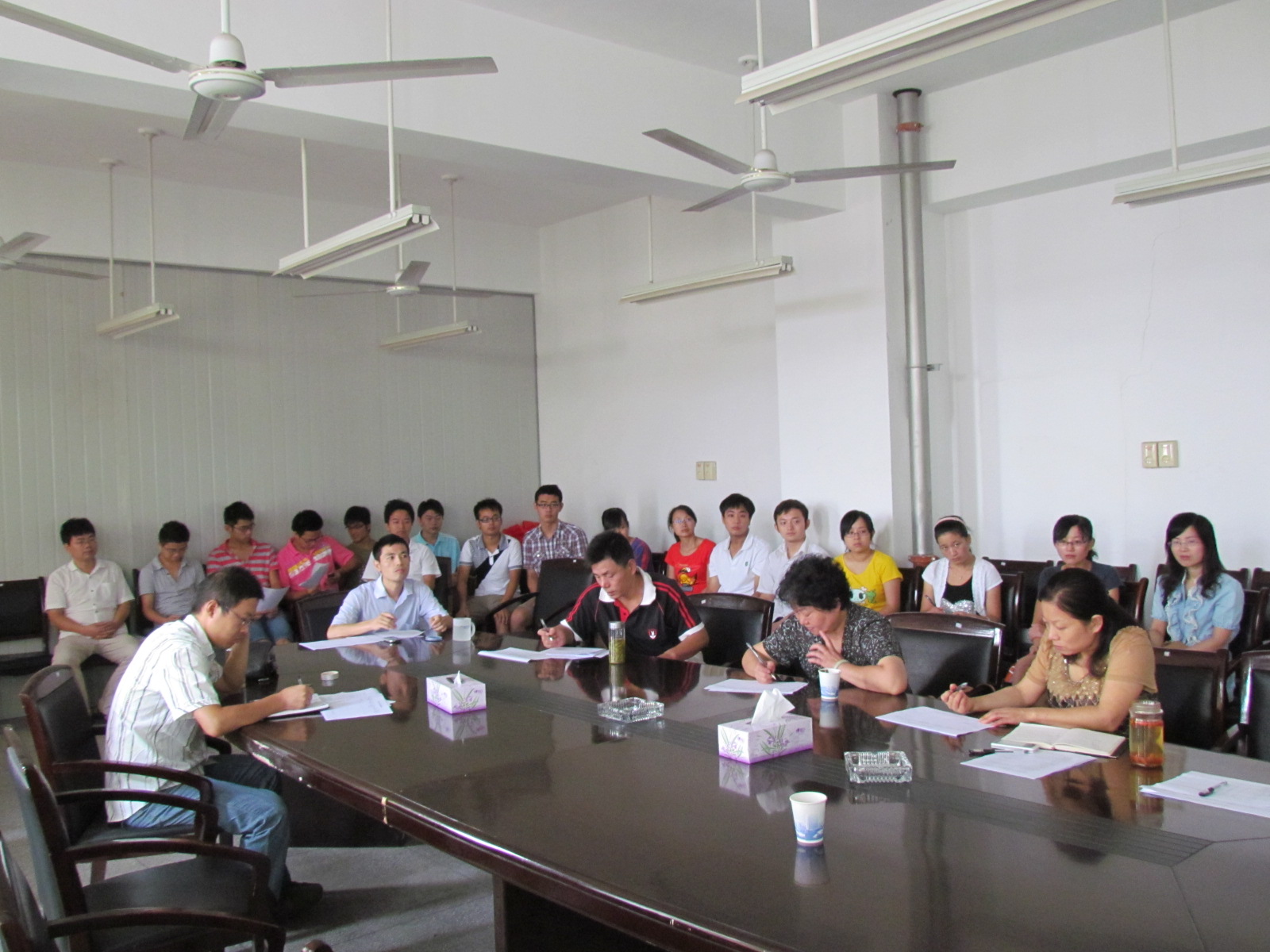 本次检查根据研究生的专业及研究内容的相关性共分为3个检查小组,每组以答辩会的形式进行。主要检查内容包括研究生学位论文研究工作进展情况、论文研究过程中存在的主要问题和困难、下一阶段工作计划、预计完成日期以及学术论文发表情况等。