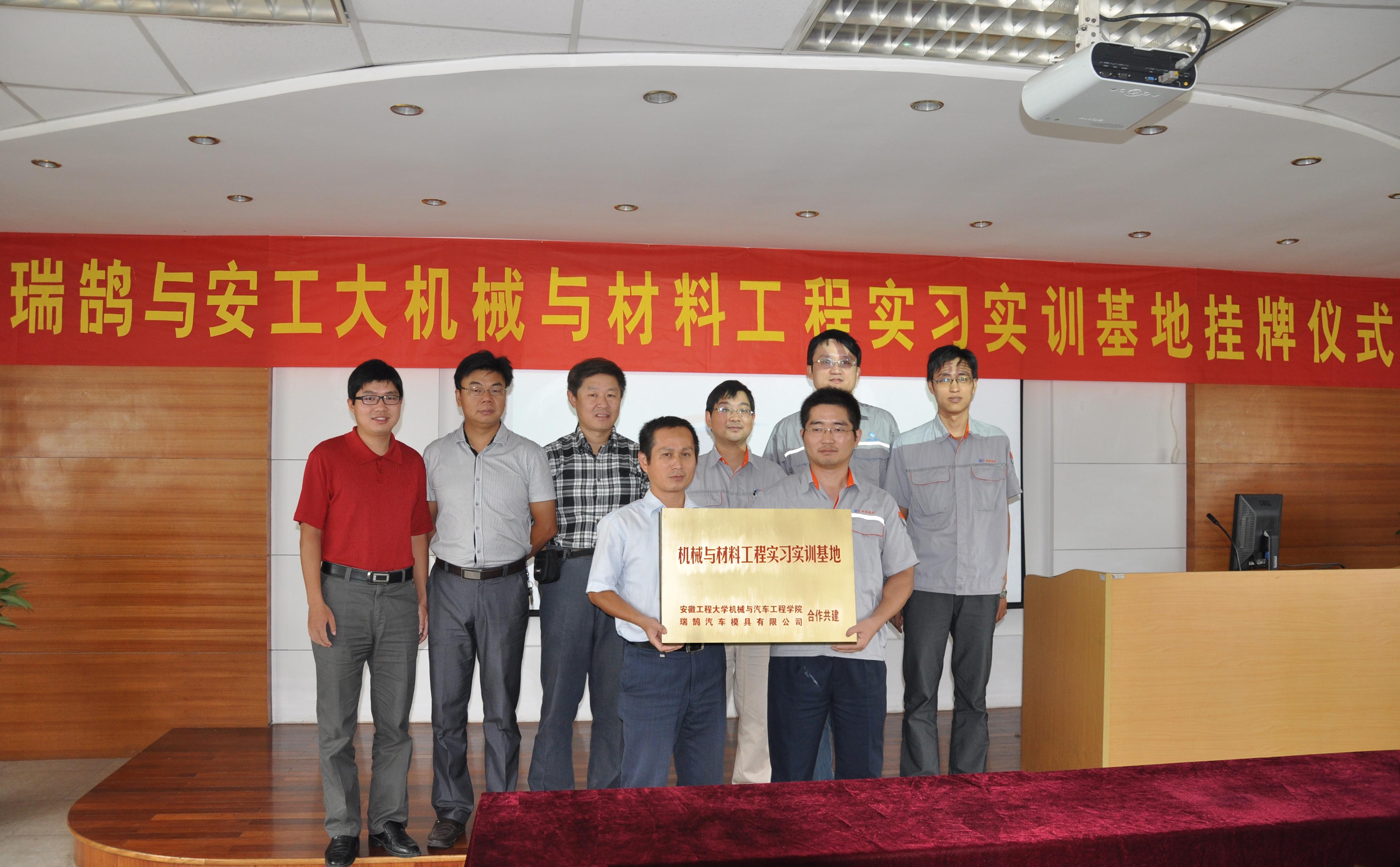 “机械与材料工程实习实训基地”是我校与瑞鹄汽车模具有限公司合作申报成功的安徽省级示范实习实训中心项目。瑞鹄汽车模具有限公司拥有技术研发中心,多家模具制造公司以及检具、夹具、冲压件等专业公司,目前已形成冲压焊装、SE分析、冲压模检夹具设计与制造、冲压焊装件及小批量生产为一体的国内首家集团性综合企业。该基地的挂牌标志着校企合作迈向了新的阶段,它凝聚了校企双方共同的理念,通过实习实训基地合作培养高素质应用型人才,培养“德、智、体、美”全面发展的优秀人才,推进我院卓越工程师计划的实施。该实习实训基地的揭牌,充分体现我校了深度融入地方经济、为地方经济发展服务的理念。