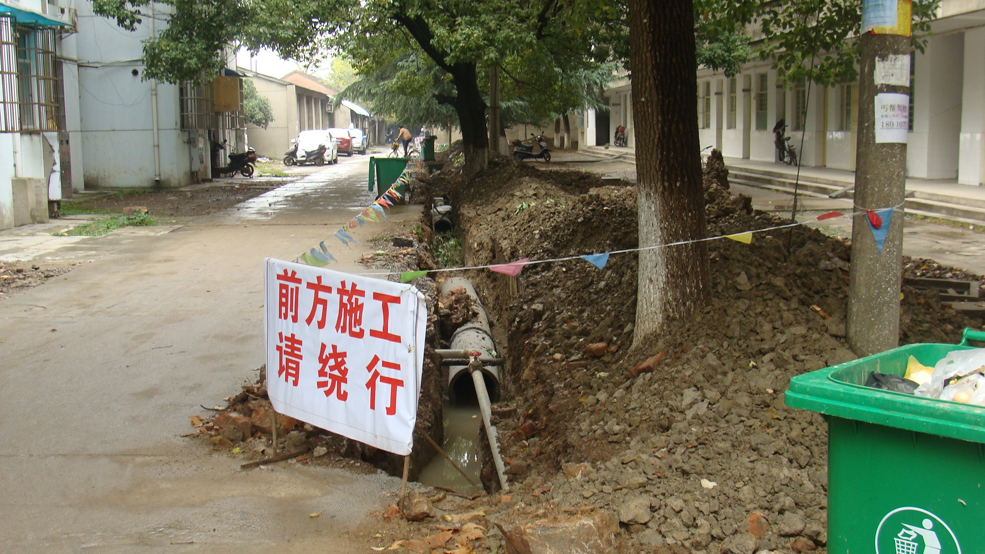 为了进一步改善教职工生活区道路通行状况和周边的环境。在校领导关心和重视下,我处启动了校园道路改造二期工程开工申报程序,并积极与市相关单位联系、商洽挂空线缆下地整合事宜。该项目经立项、勘探、设计、招标等过程后,已于10月22日正式开工建设。该工程由四个子项工程组成:挂空电力和通信线缆下地整合工程、排水排污管道和雨污分流改造工程、停车坪(机动车)修建工程以及校园道路刚改柔工程。