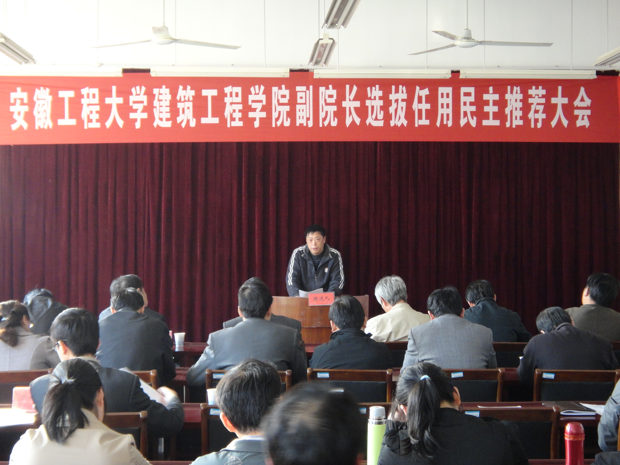 11月7日下午,建筑工程学院副院长选拔任用民主推荐大会在学院会议室隆重举行,校党委书记陈其工,校党委副书记、校长干洪,校党委副书记、副校长方友实,副校长马健,副校长汤斌,副校长叶常林,纪委书记汪奇燕,校党委委员,学校相关部门主要负责人,学院班子成员及学院全体教职工参加了会议。会议由学院党总支书记徐达奇主持。