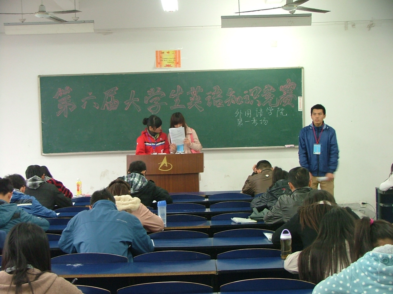 为了提高全校学生对英语学习的热情和兴趣,11月10日下午3点,作为校课外学术科技节系列活动之一的由校团委主办、外国语学院团总支和学生会承办的校第六届大学生英语知识竞赛决赛在六教拉开帷幕。