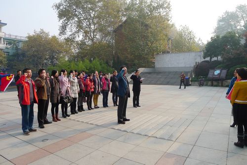 在王稼祥纪念馆广场上,图书馆党支部首先举行了庄严隆重的新党员入党宣誓仪式,同时老党员也重温了入党誓词,接下来全体党员瞻仰了王稼祥铜像并与之合影留念。