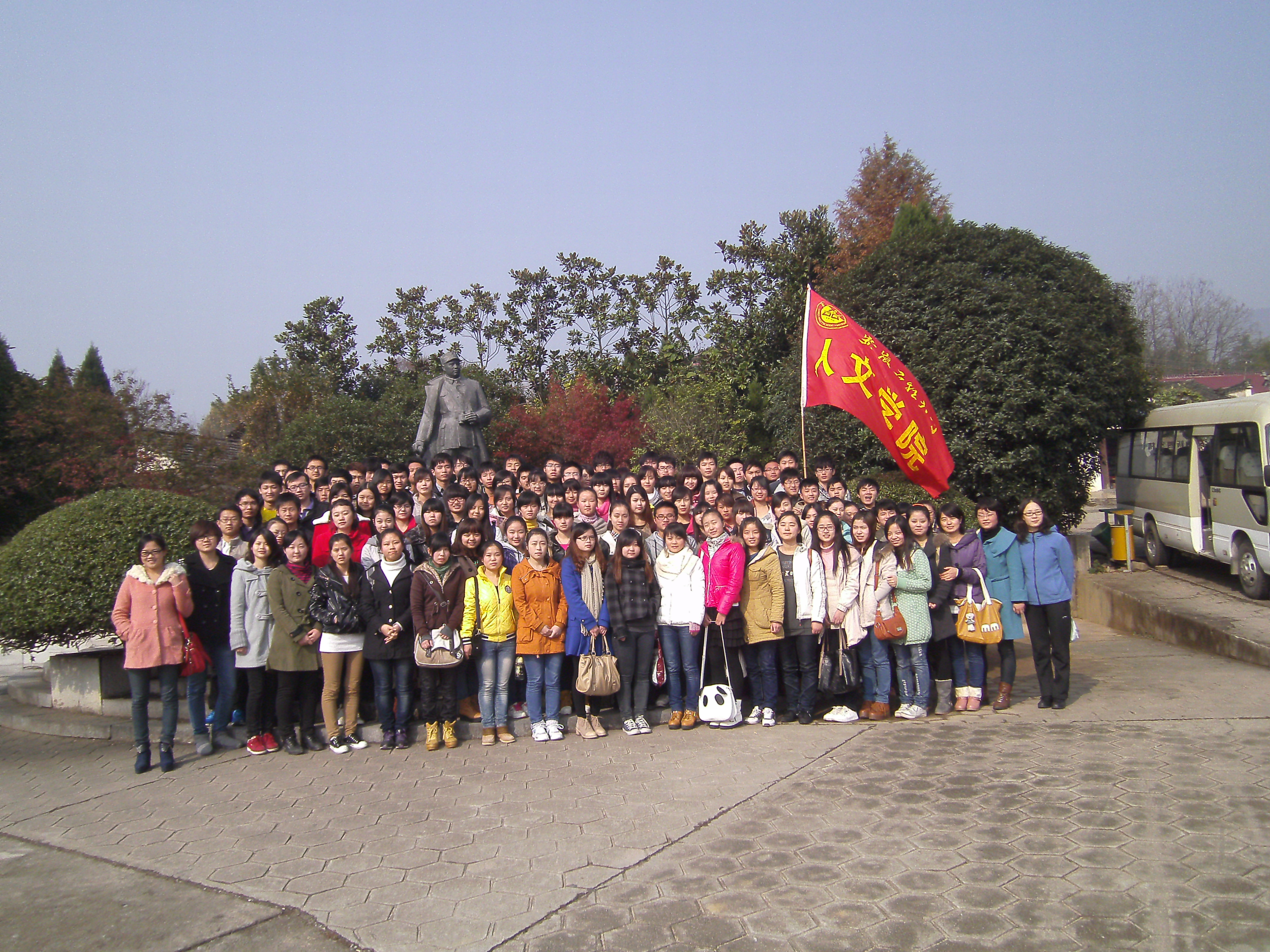 为重温党的艰苦历程,加强入党积极分子的思想教育,2012年11月17日,人文学院分党校第十三期全体学员在院党委书记、党校校长倪谷村老师、学院办公室主任彭海燕老师、党校班主任鲍琴老师及辅导员李德才老师的带领下赴革命老区泾县,进行了一次意义深远的实践教育活动。