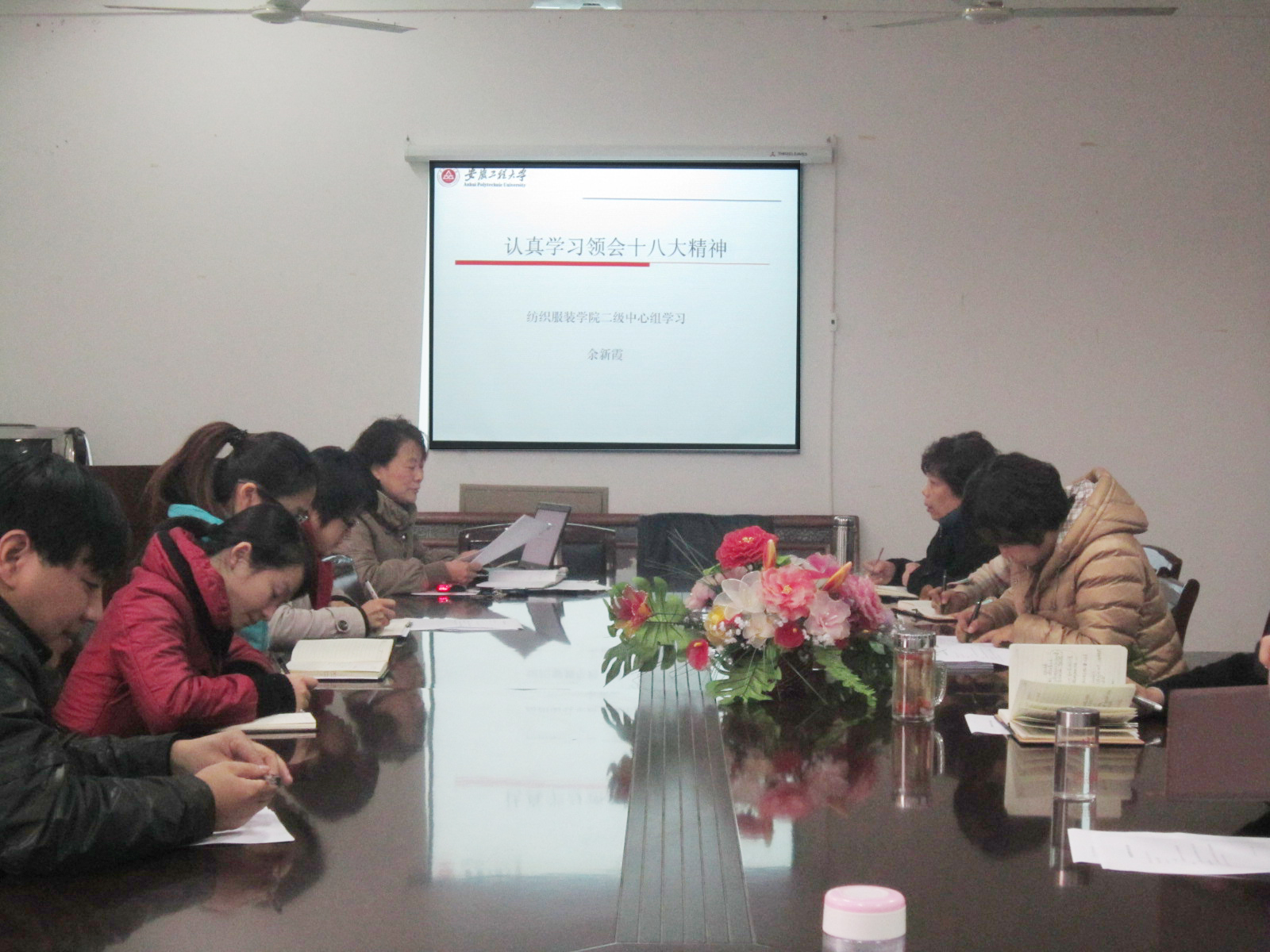 11月30日上午,纺织服装学院党委中心组在院会议室召开学习会,会议由院党委书记余新霞主持,中心组全体成员参加了学习。