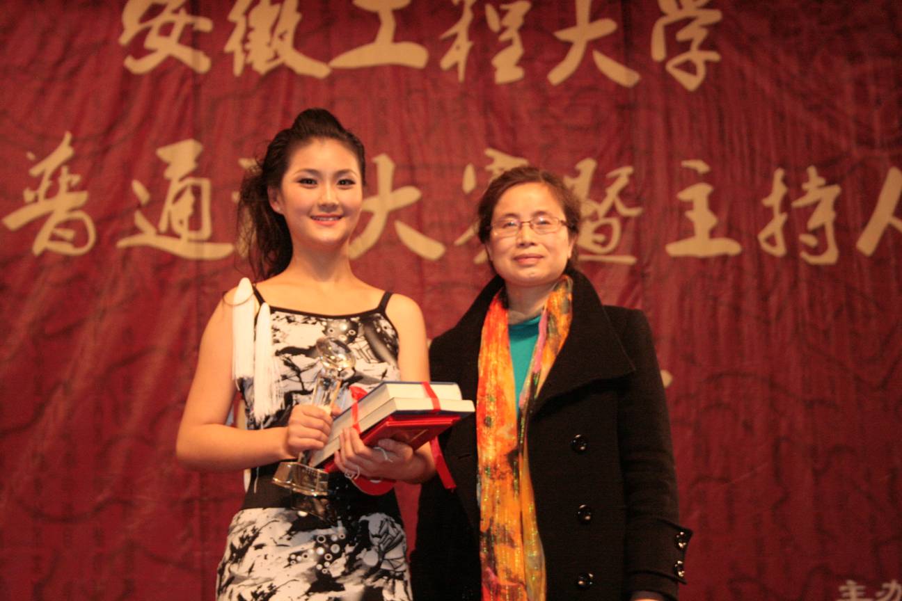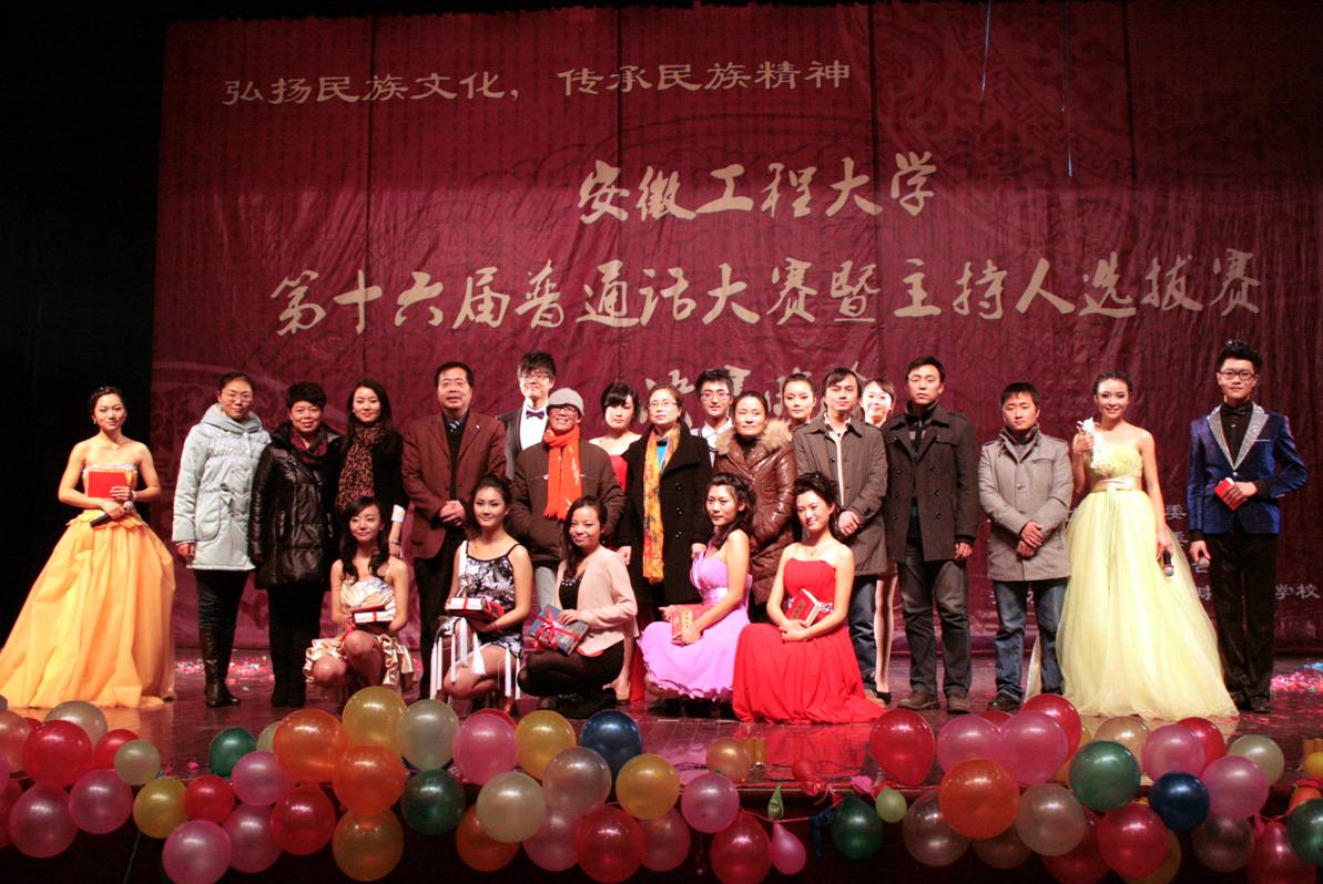 全部选手展示过后,校广播台主持人带来的反映广播台生活的原创集体诗词朗诵感人肺腑,也将现场气氛推向了高潮。特邀嘉宾、芜湖新闻频道著名播音员汪蕾对大赛作了精彩点评。