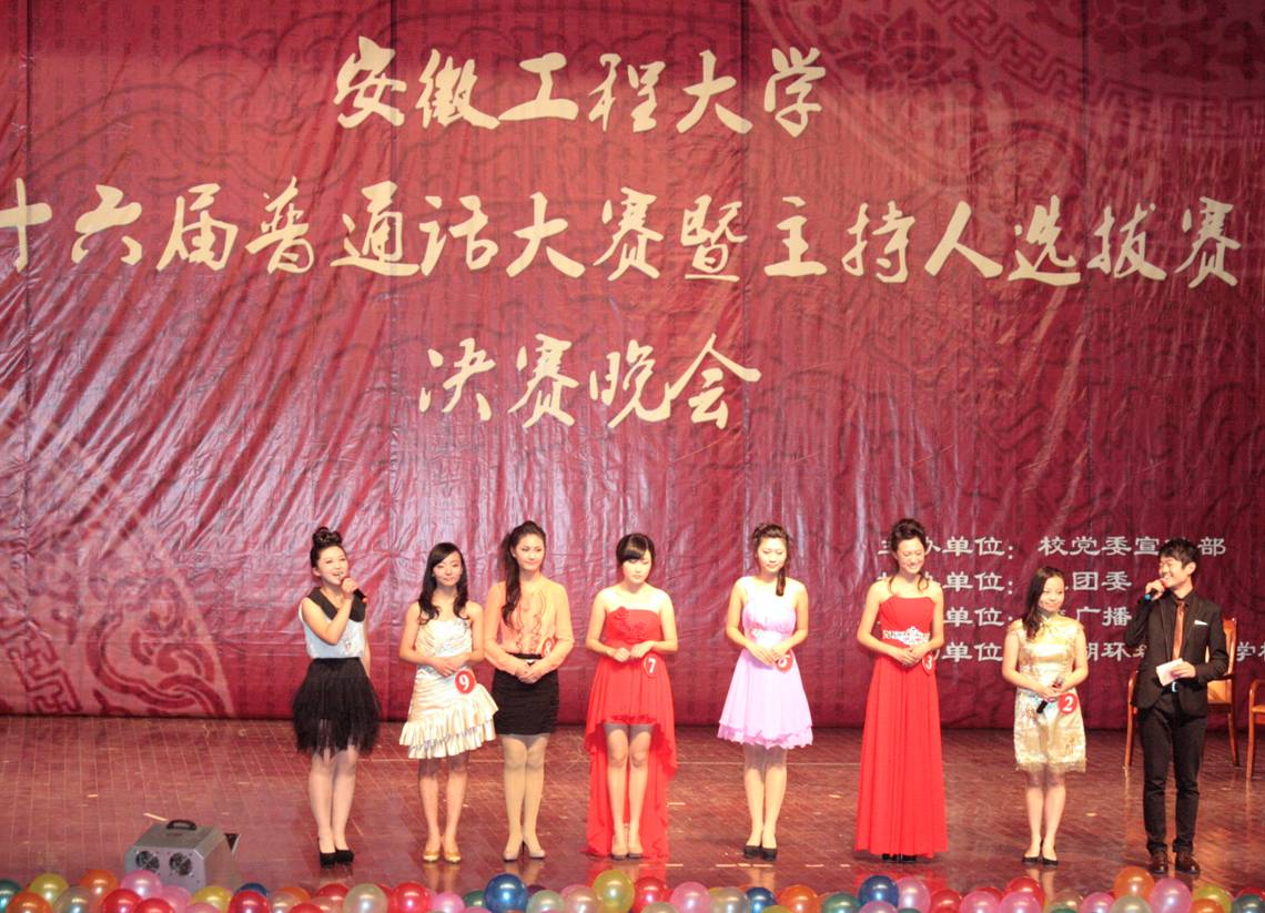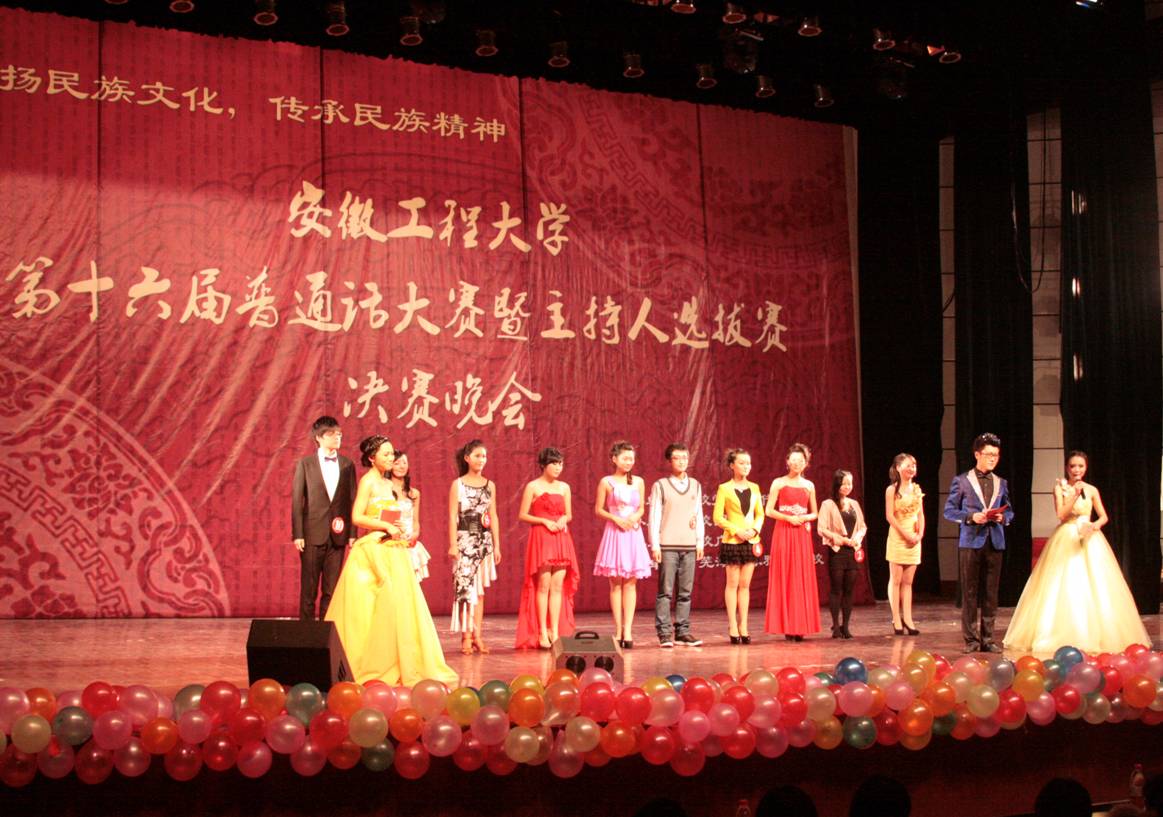 培育社会主义核心价值体系,建设社会主义文化强国,是党的十八大对文化建设的新要求。此次普通话大赛旨在为学生提供广阔的展示舞台,打造高雅校园文化平台。经过海选、初赛和复赛近三个月的激烈角逐,共有十位选手从全校近千名报名者中脱颖而出,进入了当晚的决赛。决赛分三个环节,分别是模拟主持环节、现场PK环节和才艺展示环节。第一环节十位选手根据设定主题营造出不同节目类型主持人的风格,由评分高低决定进入第二环节的六强选手;第二环节由现场主持人考验选手们的综合素质及应变能力,由评委决议决出三强选手;最后的第三环节通过才艺展示来决定比赛的冠军归属。