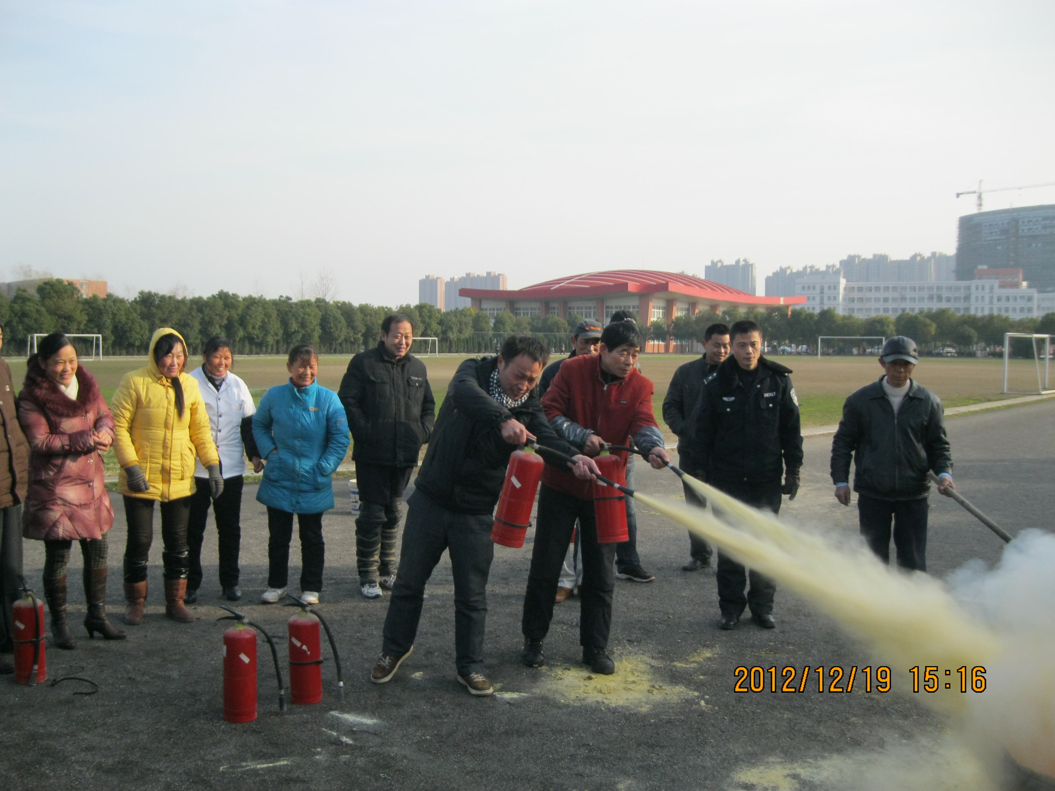 为提高学生食堂职工消防安全意识,2012年12月19日下午,后勤集团会同保卫处组织学生食堂员工进行了一次消防安全演练。保卫处对参演员工现场开展了关于食堂消防安全基本知识和灭火器正确使用方法等内容的培训,员工们进行了全过程的演练。