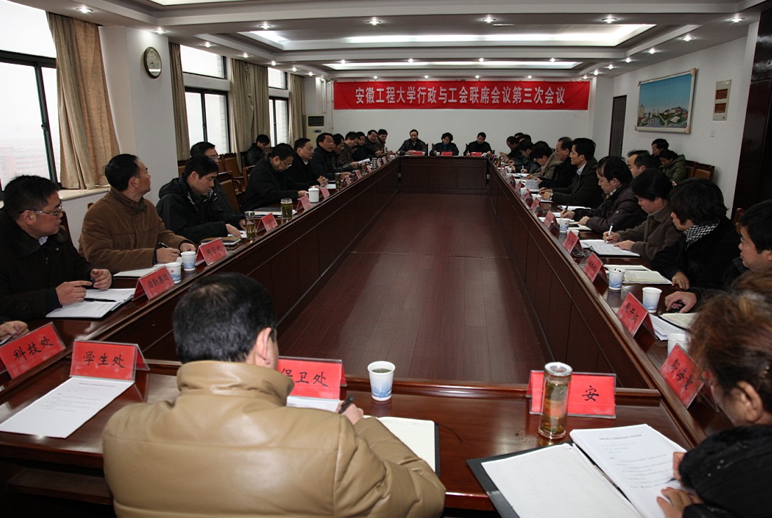 干洪在会上作重要讲话。他指出,党的十八大报告对实践党的群众路线、加强基层民主和保障民生提出了明确的论述和要求。学校行政与工会联席会议是加强民主管理的重要渠道,是贯彻党的群众路线、加强群众工作的重要途径,是新时期我国高等学校具体实行民主管理的一种好形式,本身即具有丰富而具体的深刻内涵。长期以来,学校党委行政一直高度关注民生建设,坚持群众利益第一位,积极探索民主管理机制并努力践行。我校行政与工会联席会议已成功召开了两次,这是对我国高等学校民主管理机制的有益的探讨,目前已形成了良好的沟通机制,取得了显著成效,得到了省教育工会的高度肯定,也在省内外取得了较大反响。前两次联席会议提出的18项议题,已全部并基本在第一时间得到了妥善解决。实践证明,我校的联席会议对解决教职工普遍关心的问题具有现实实效性。联席会议进一步促进了信息沟通,从而提高了学校和各职能部门对民生问题的关注,由此也可进一步促进我们对于工作重点的关注,学校的各项决策也能更好地深入实际。本次会议提出的8个方面的问题,是工会委员会通过广泛调研并认真梳理出的现阶段教职工关心的问题,也具有一定的代表性和关注度,在此代表学校党委行政向校工会委员会和各级工会干部关心群众利益、关心学校发展表示感谢!干洪对会议议题的落实提出了三点要求:一是要求议题涉及到的分管领导、职能部门负责人要认真高效地办理落实;二是要求校办公室和工会对会议精神的落实情况进行督促检查,并在下次联席会议上作全面通报;三是要求校工会、各教学单位和有关职能部门负责向广大教职工传达和通报会议精神。