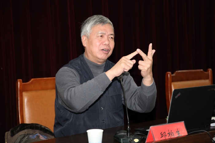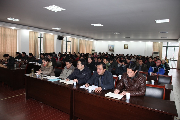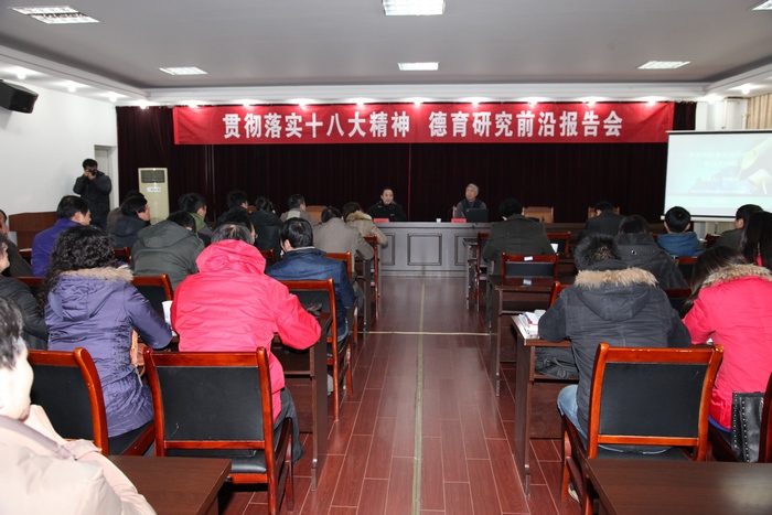 2012年12月28日下午,我校思政部、学工部、宣传部等部门邀请复旦大学国际关系与公共事务学院博士生导师邱柏生教授来我校作了题为“开展德育理论研究的几个问题”的学术报告。报告由思政部党总支书记李卫华主持。宣传部部长苏国红、副部长吴月红、学生处处长王河、副处长胡家增、团委书记刘一、各学院分管学生副书记、全体辅导员、全体思政课教师以及马原和思政专业硕士研究生聆听了此次报告。