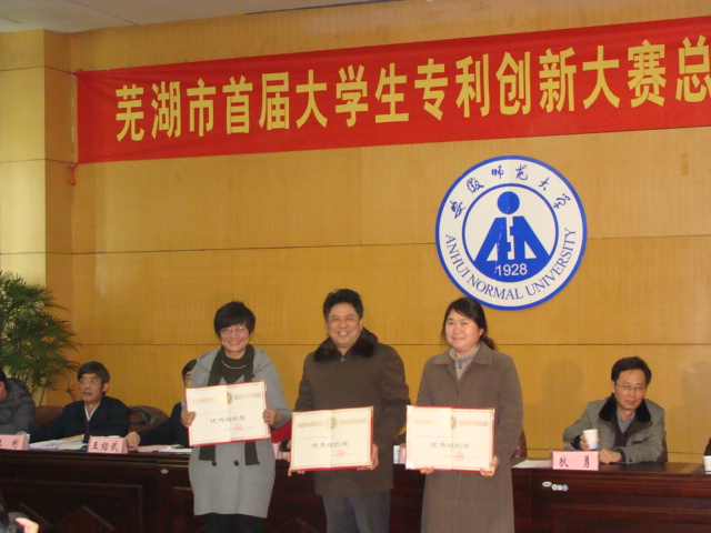 我校历来高度重视大学生科技创新工作,为筹备组织参加本届大赛,多次召开专题会议研究,成立了工作领导小组、制定了相关制度、邀请了知识产权专业人士来校作辅导报告,成功举办了校首届专利发明与创新大赛,并向芜湖市大学生专利创新大赛组委会推荐申报了200余件作品,最终,在芜湖市专利创新大赛设置的100个奖项中获奖47个,其中特等奖1个,一等奖6个,二等奖8个,三等奖32个,获奖等级及比例均位居芜湖市高校前列。同时我校被授予此次大赛的优秀组织奖。
