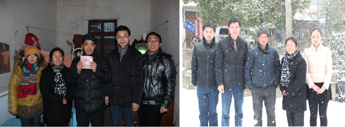 为了关爱家庭经济困难学生,及时把学校的帮扶与温暖送到学生身边,鼓励他们成长成才。元月5日,学院党委书记刘金斌、副书记孟向红等一行四人,冒雪专程到胡玉玲和朱光琳两位同学家中走访慰问,并送上慰问金。