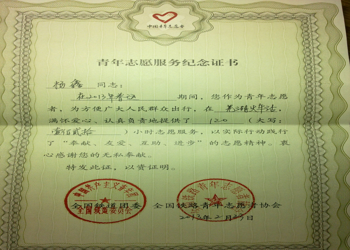 2013年2月15日至2月24日,人文学院“暖途”青年志愿者分队与芜湖火车站联合组织开展了为期11天的春运志愿服务活动,自2006年以来连续8年坚持在春运、寒暑假及各节假日集中开展火车站志愿服务活动,得到了社会各界的广泛好评。2013年3月1日的《安徽青年报》以《“暖”在旅“途”》为题进行了报道,杨鑫同学还获全国铁道团委和全国铁路青年志愿者协会颁发的青年志愿服务纪念证书。